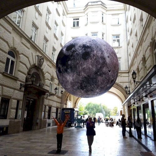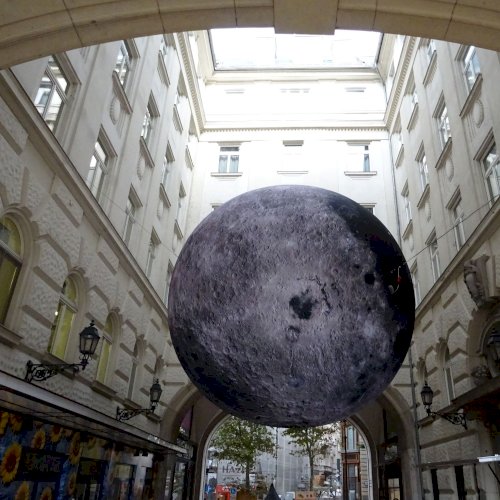 A hold közel akkora, mint az átjáró maga, az emberek feje felett 3 és fél méterre (máshol a hold átmérője ugyanennyi). Tündöklését eredetileg két hónapra tervezték, de a kiállítást meghosszabbították, pontosabban űgy tűnik, talán "újraindították". [2]