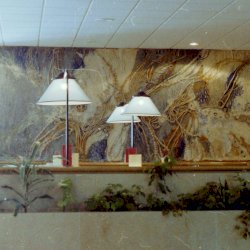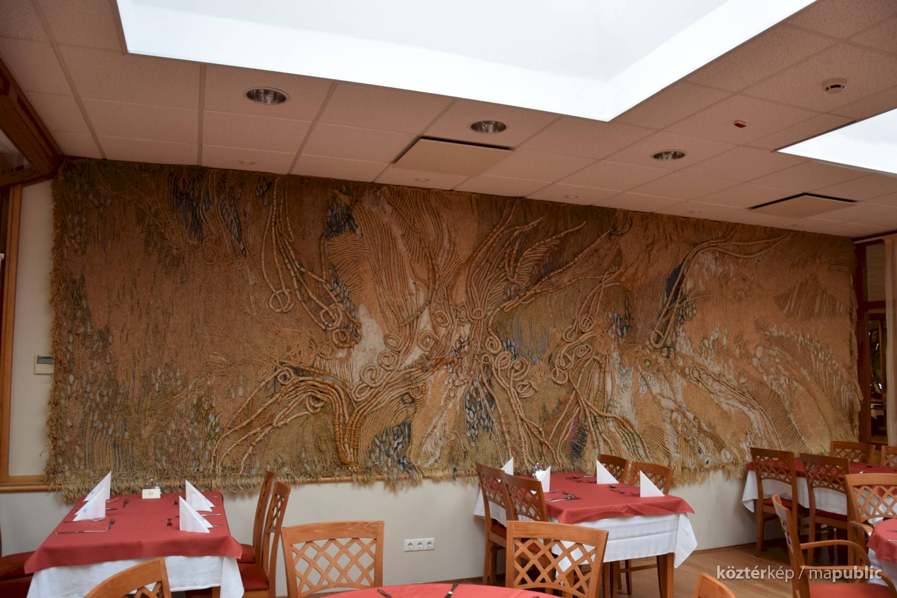 Későbbiekben, tulajdonosváltáskor a belső tereket átalakították, térelválasztókkal zártabb éttermi részt kerítettek el, így most (a tisztítás után sajnos színeiben kicsit megfakult) falikárpit csak ott látható.