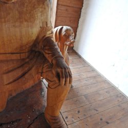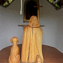 Első alkalommal a Rockenbauer Pál Dél-dunántúli kéktúra teljesítése során jártam a Ropolyi-tónál, akkor fedeztem fel a kápolnát, s benne az alkotást. A kápolna ajtaja zárva volt, így fotózásra nem volt lehetőség. Hazaérkezve felvettem a kapcsolatot a Zselici Csillagparkkal, ahonnan átirányították levelemet a Sefag Zrt felé, s hamarosan meg is érkezett a válasz szívesen kinyitják a kápolnát amikor arra járunk. Ezúton is köszönöm Kovácsné Horváth Diana Dóra ökoturisztikai erdész rugalmasságát, segítőkészségét, hogy egy vasárnap délután rendelkezésünkre állt. Sajnos pontos információval a szoborról nem tudott szolgálni ám egy közösségi médiában szereplő post segített.[1] Felvettem a kapcsolatot Horváth Béres János fafaragóval akitől a szükséges információt megkaptam melyet ezúton is köszönök.