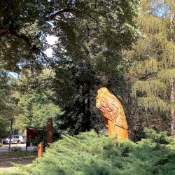 A hotel előtt 2025. júliusában helyezték el [1] Horváth-Béres János faszobrász három és fél méter magas,eredetileg egy 4,7tonnás tölgy rönkből készült alkotását.