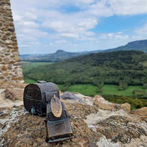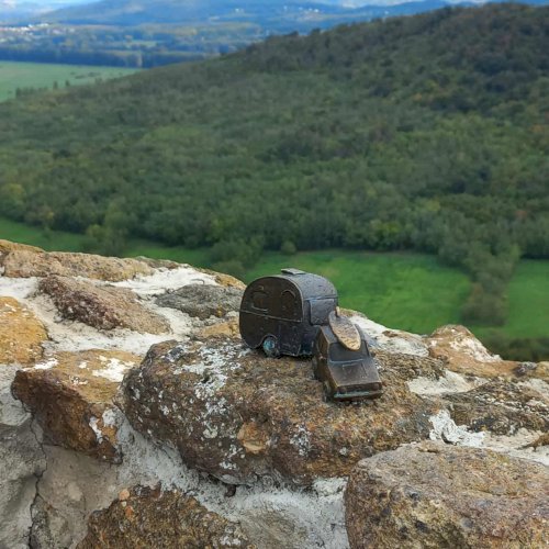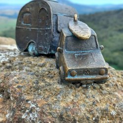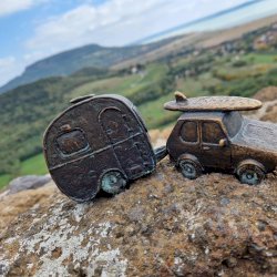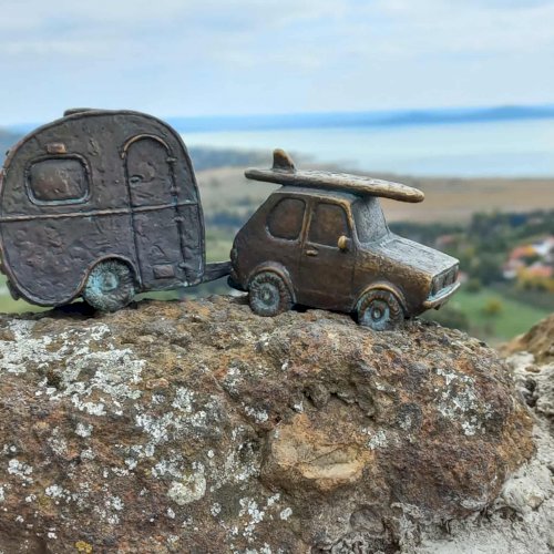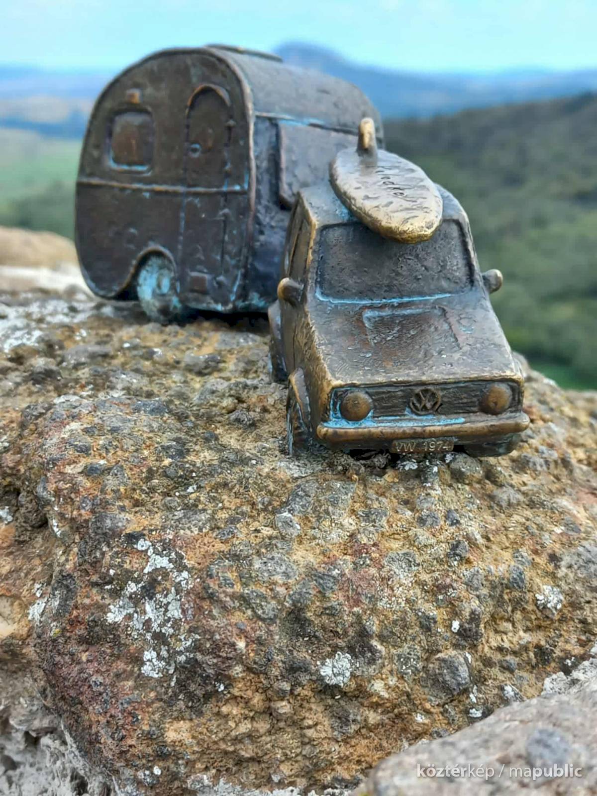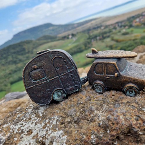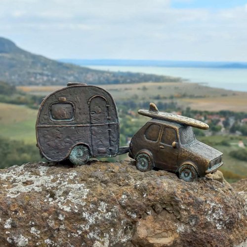 [1] Maga a szobor egy lakókocsit húzó valószínűsíthetőn régi Volkswagen Golf a tetején pedig egy szörf/SUP. Itt már mindenki képzeletére van bízva, hogy a modernebb vonalat vagy a nosztalgiát látja benne (SUP vagy szörf).