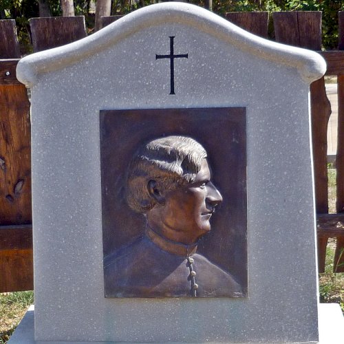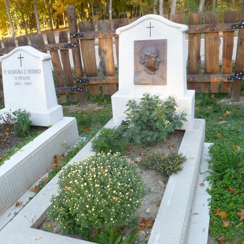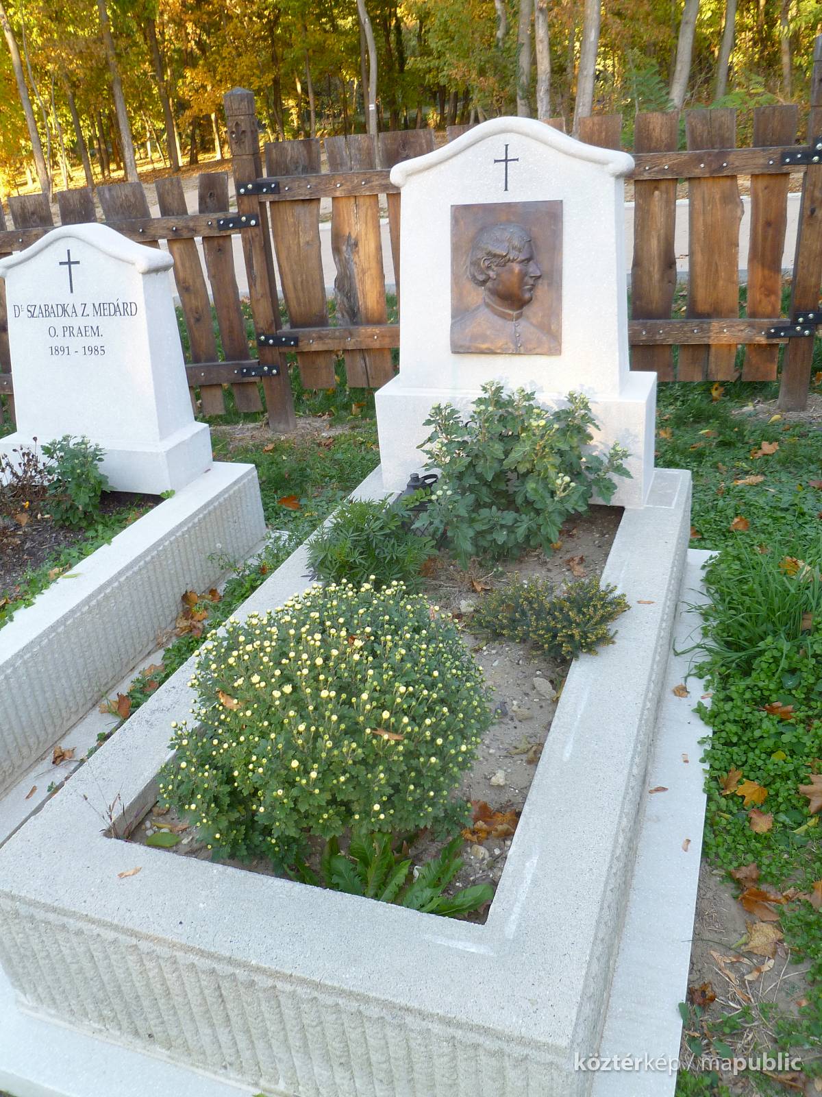 Tisztelői, rendtársai, a rend volt diákjai emelhették és állíthatták fel a "városi" temető premontrei parcellájában e lap archív fotótárában egy téglafal előtt látható emléket. Ezen az emléken már szerepel a Dr. Pálvölgyi Richárd által mintázott bronz mellkép. Az emlékkő kettős tagozódású és sírfeliratot is hordozott. [3]