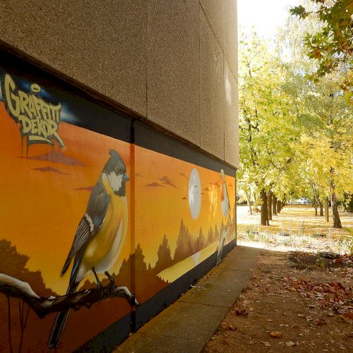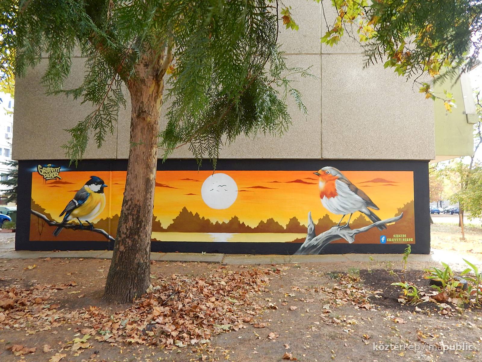 A „Szegedi graffiti dekor festés” sorozat új őszi hangulatú, látványos graffiti-festménye díszíti a Beretzk Péter utcai sarokházat. A természet egyik csodája, az ősz meleg, narancsos-barnás tónusai, a naplemente vörös- és aranysárga árnyalatai, részletgazdag kompozícióban jelenik meg a szürke panelépület falán.
