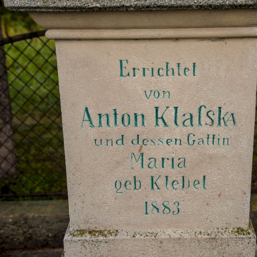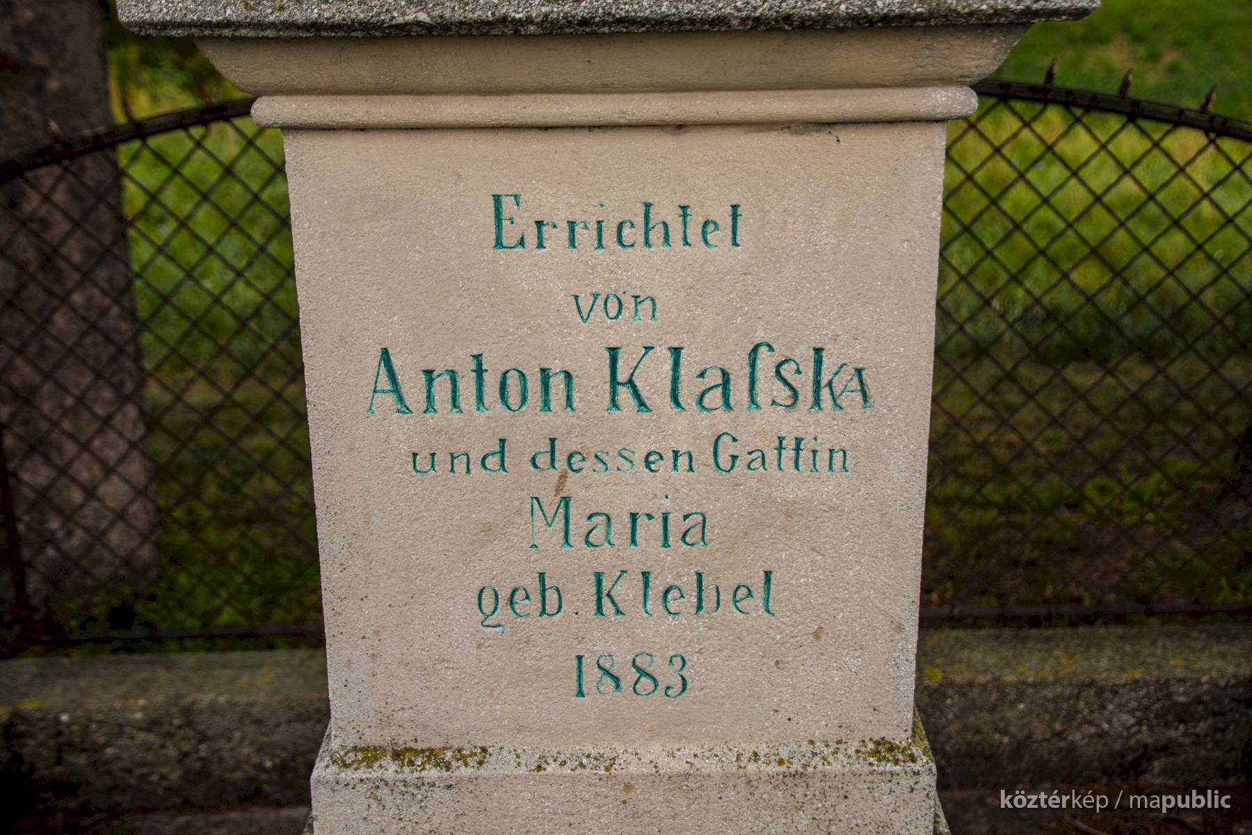 A talapzat felirata szerint Anton Klafska és felesége, született Klebel Mária állíttatta 1883-ban.