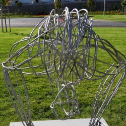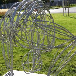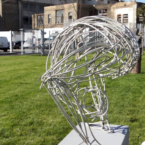 Másrészt elfogadom, ötleteivel, szárnyalásával kiállító művész. Nem kevés helyen szerepel, de szép, jellegzetes sorozatot találtam a Léna & Roselli Gallery Fb-oldalán, nevére rákeresve. Azt is leszűrtem, a Gólem is egy "kísértő" téma, más feldolgozásban, pl. egy installációba ágyazva is látható a galériában. Amit biztosra látok, ez az alkotás az elsőként említet korszak szülötte – akkor is, ha a változatoknál az anyag más és más, vagy épp színezést kap.