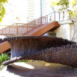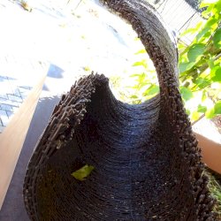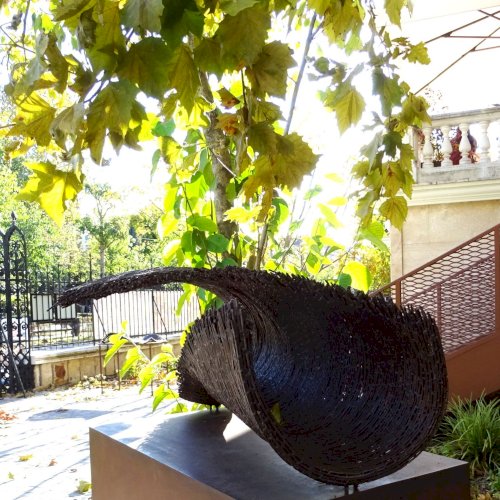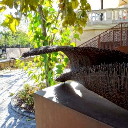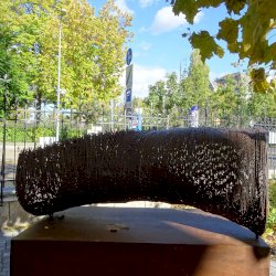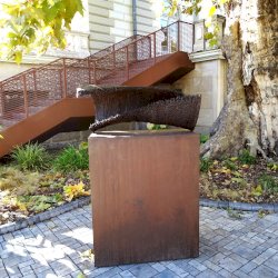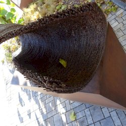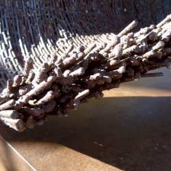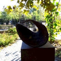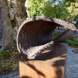 Az Epreskertben találtam anno Becskei Andor művét, de akkor már ismertem (szabályosan lenyűgözött) a Szövet című, nagyobb léptékű alkotását a Káli Art Park kiválasztottjai között. Így aztán az alkotó beazonosítása könnyű volt, utánakeresve bizonyítást nyert.