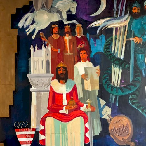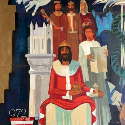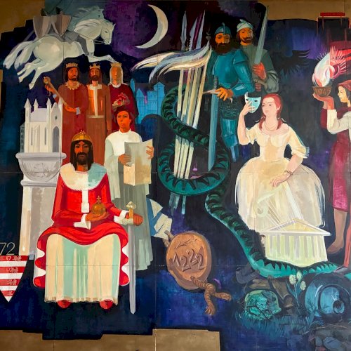 Az Ezeréves Fehérvár nem pusztán várostörténeti pannó, hanem egyfajta vizuális himnusz is, melyben a magyar történelem, vallás, kultúra és modernitás egységbe rendeződik. A kompozíción végig vonuló kígyó, mint az idő- és élet körforgását jelképezi - az a vonal, amely összeköti a múltat a jelennel, a város és a nemzet örök megújulását hirdetve.