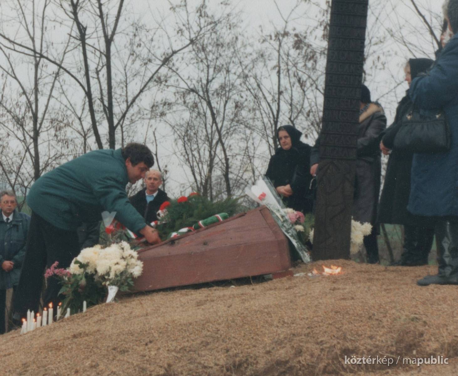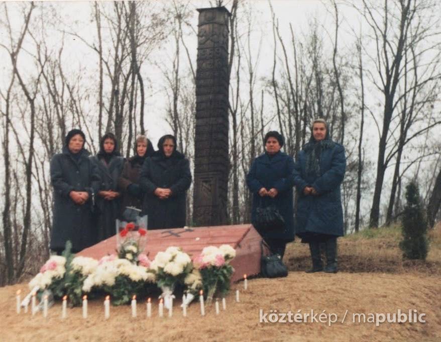 Az emlékoszlopnál emlékezés 1998-ban., Szücsi külterület, X. akna előtt.