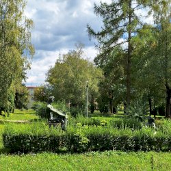 Meglepően buja növényzet között található a páros, mind a sövény, mind a pázsit megnyírásra várt a parkban.