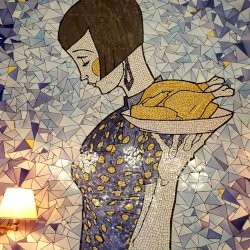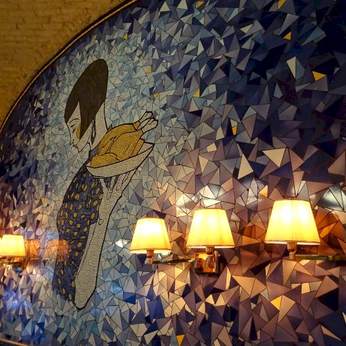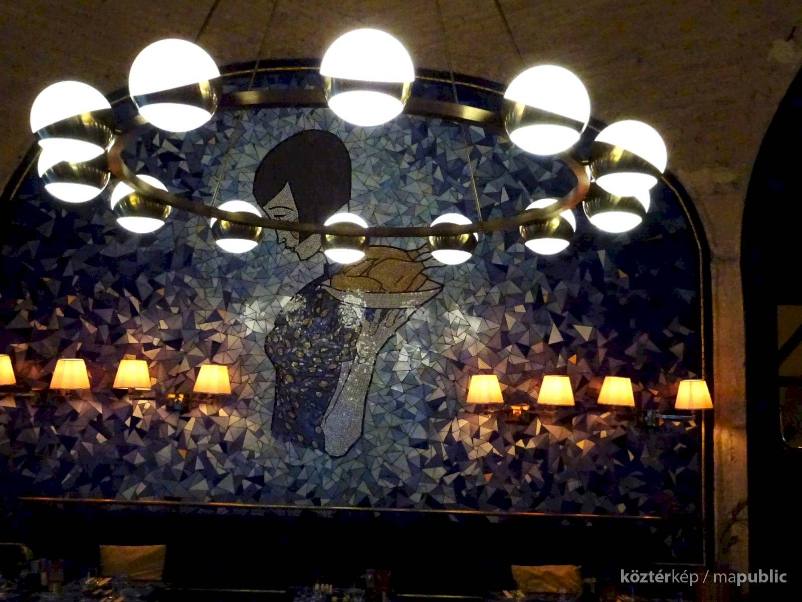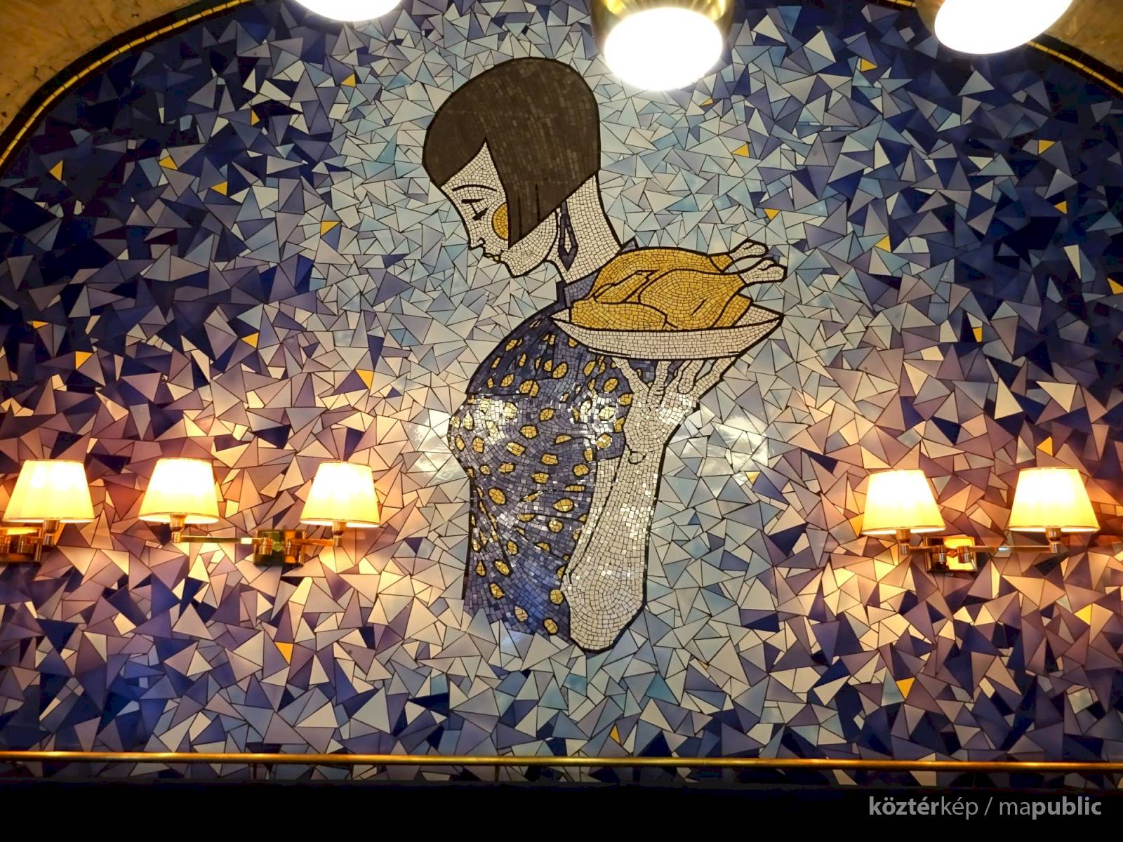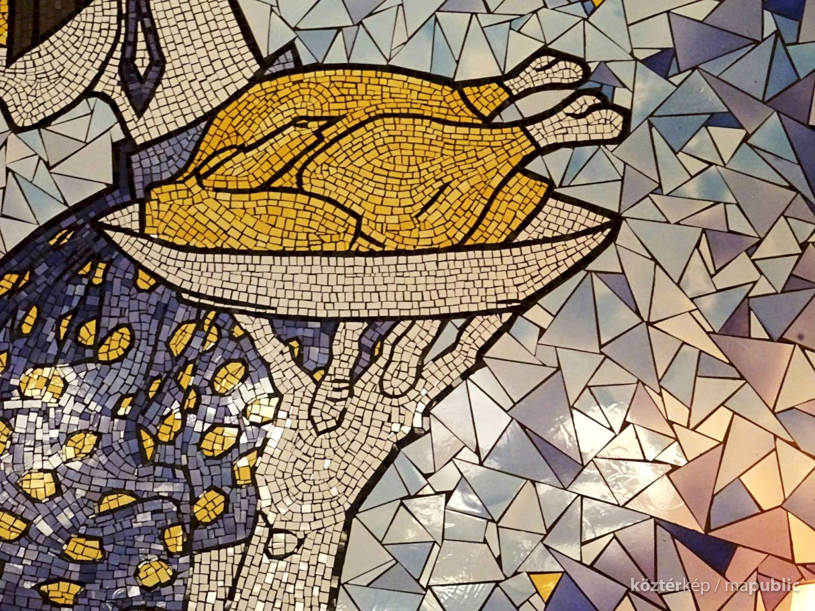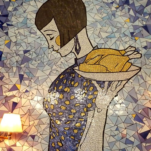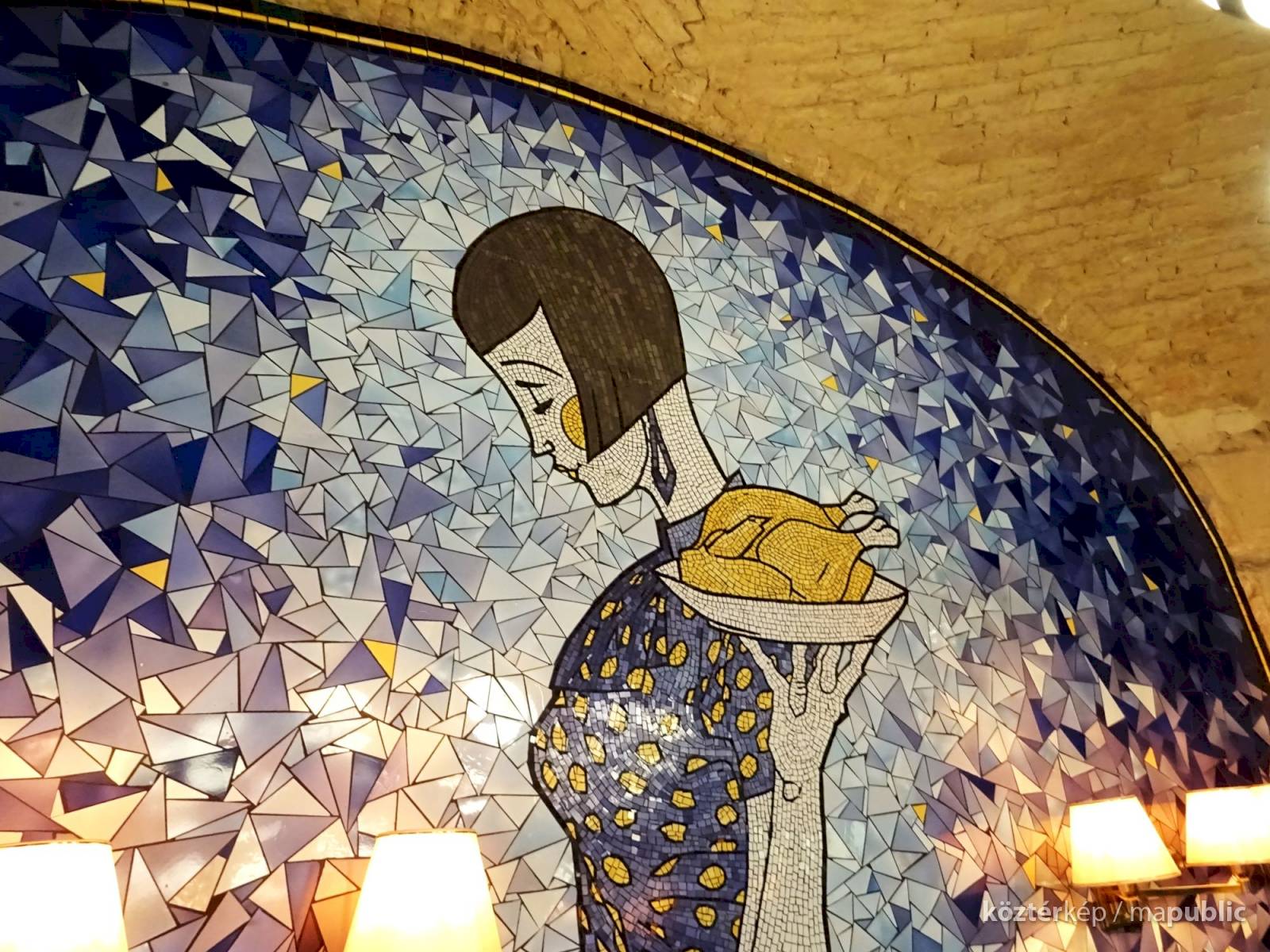 Ezt a milliőt képviseli a mozaik, tehát Hilda is – miközben az étterem különlegesnek ismert grillcsirkéjét szolgálja fel.