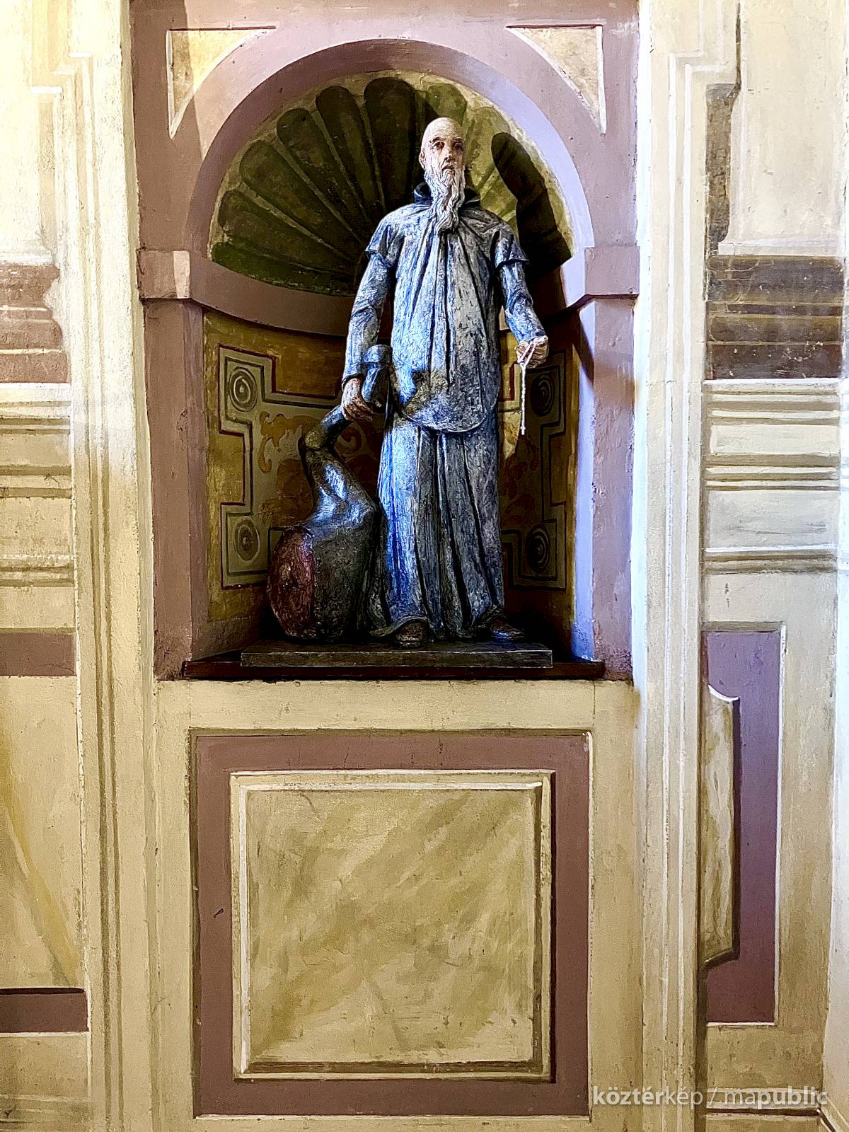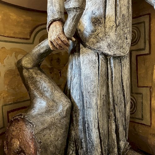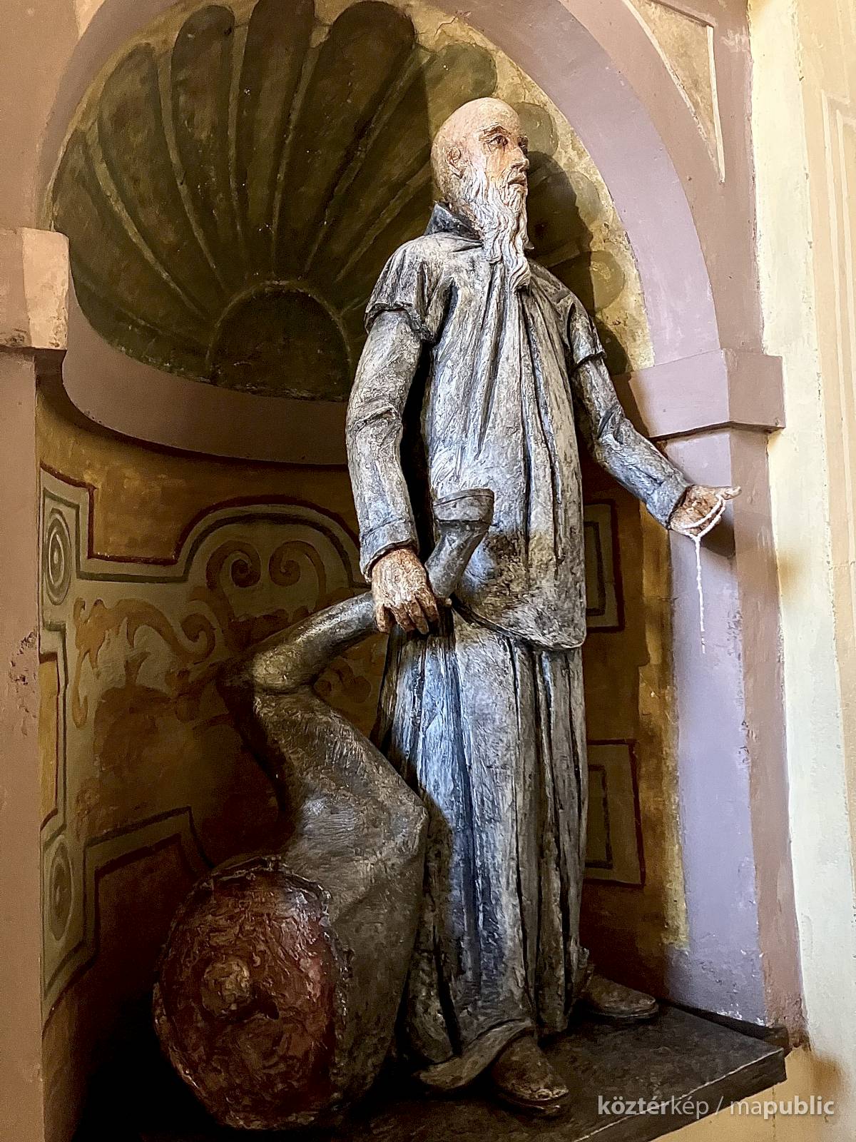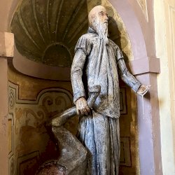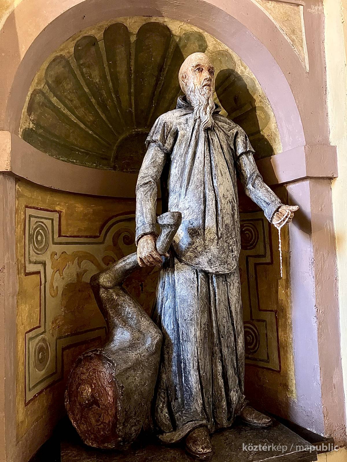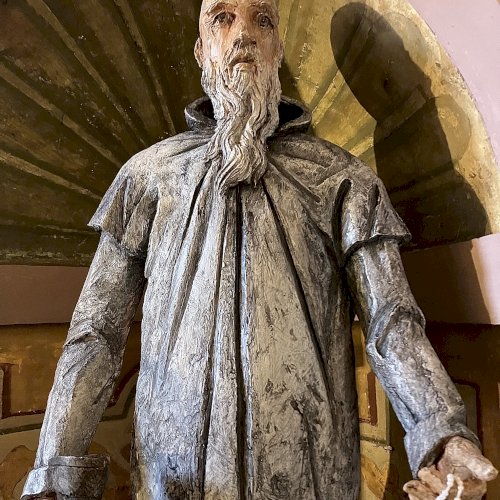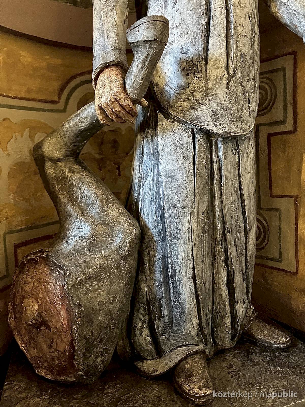 Az egész alakos szobor a Certosa di Garegnano templomhajóját díszítő tizenhetedik századi freskó újraértelmezése (l. https://www.kozterkep.hu/50754/guglielmo-da-fenoglio#vetito=585151)
