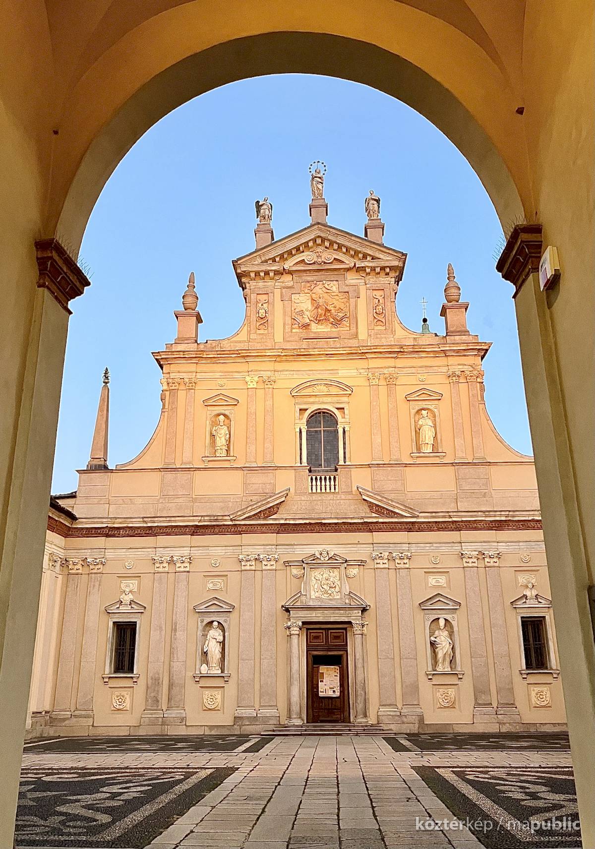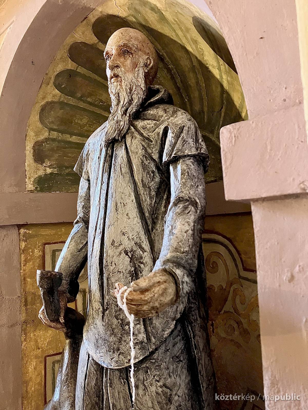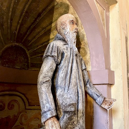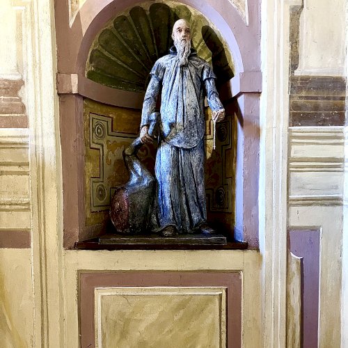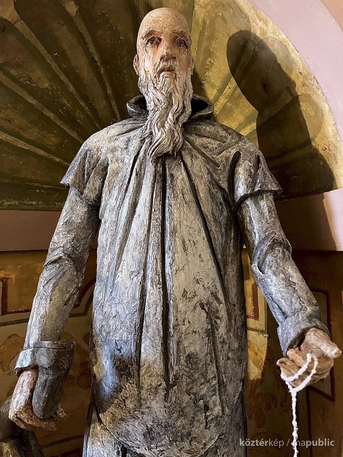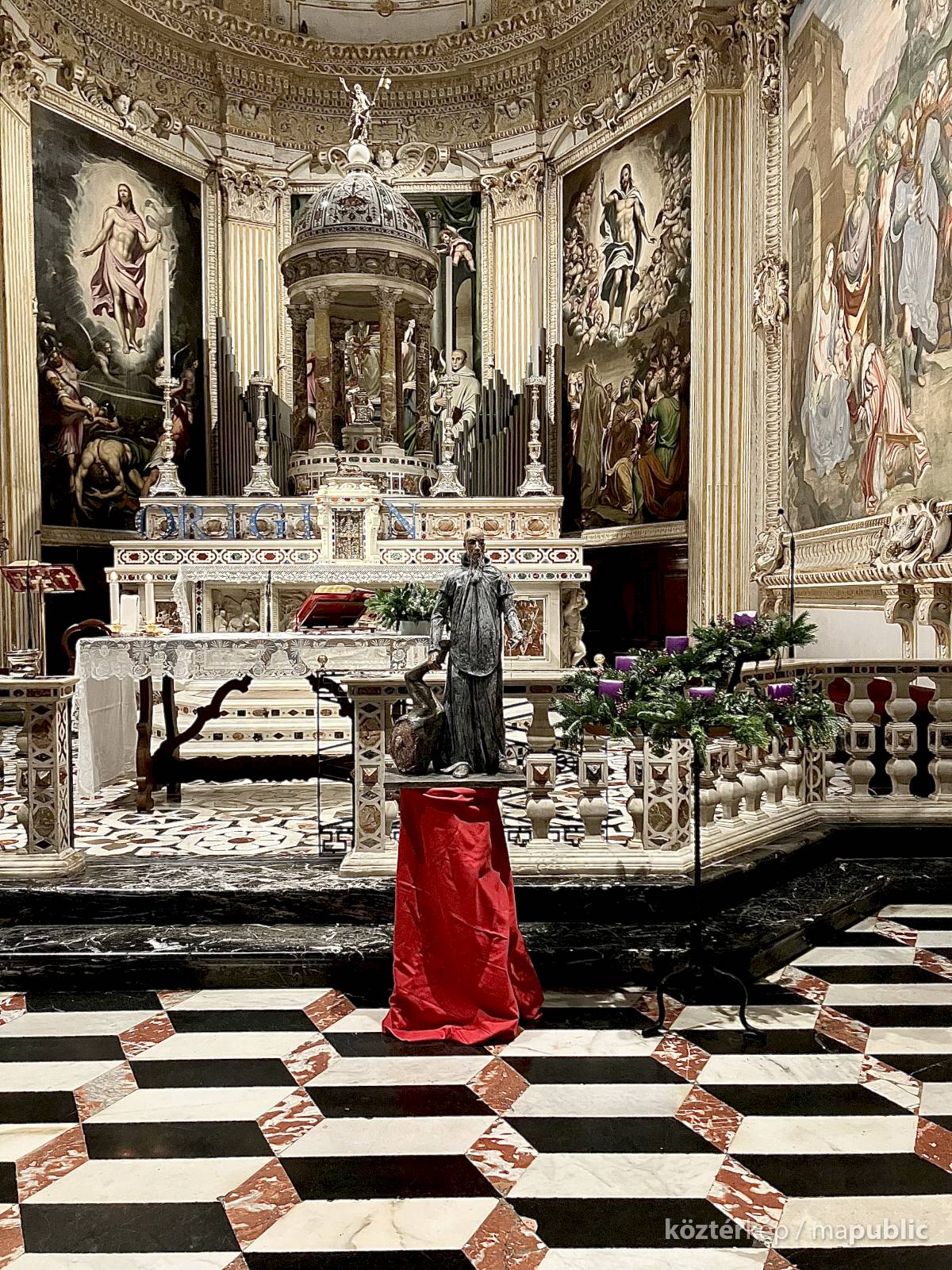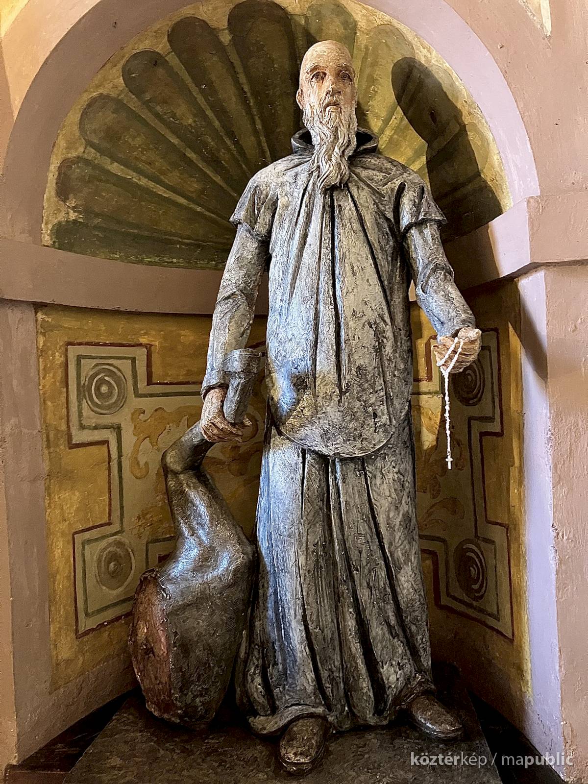 Az egész alakos szobor a Certosa di Garegnano templomhajóját díszítő tizenhetedik századi freskó újraértelmezése (l. https://www.kozterkep.hu/50754/guglielmo-da-fenoglio#vetito=585151)