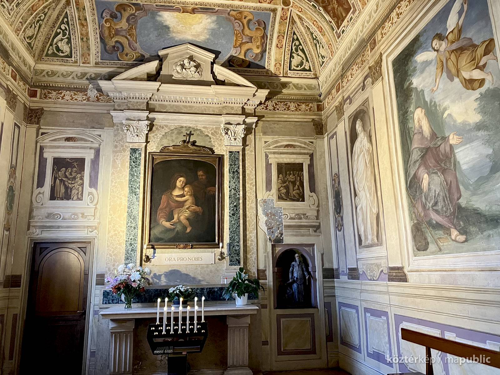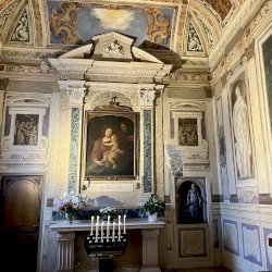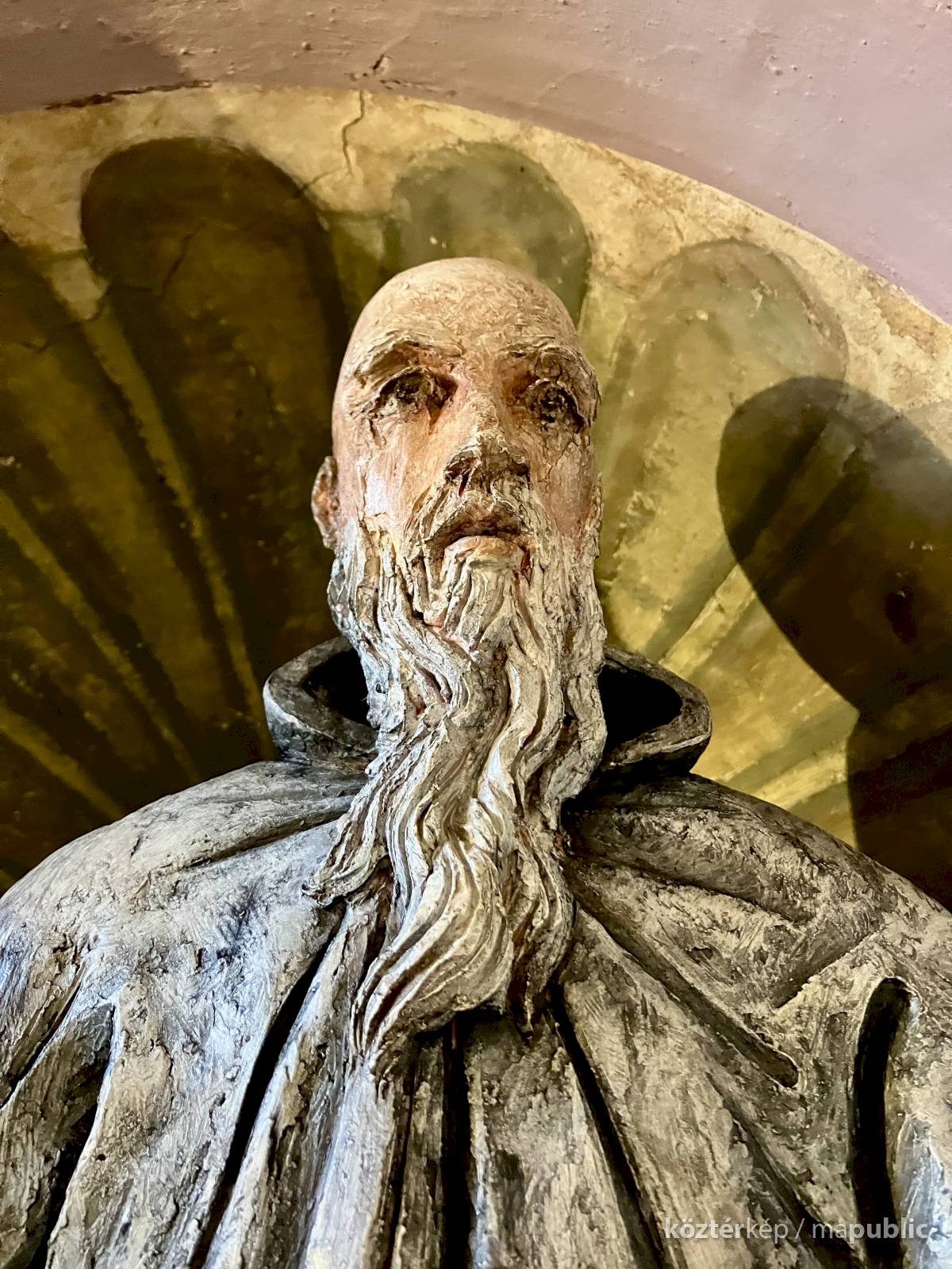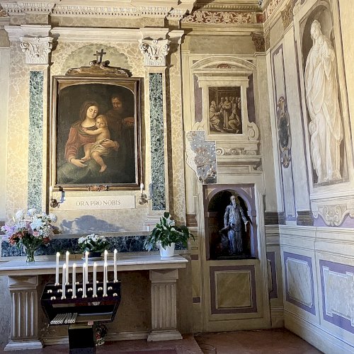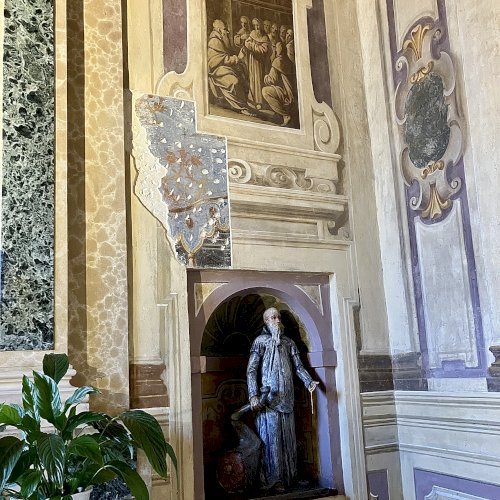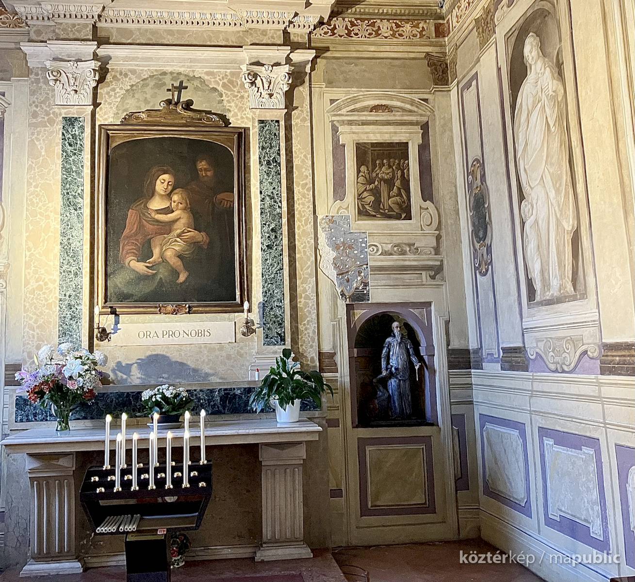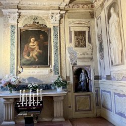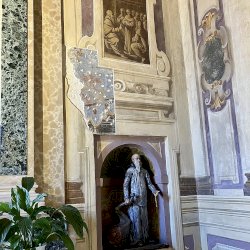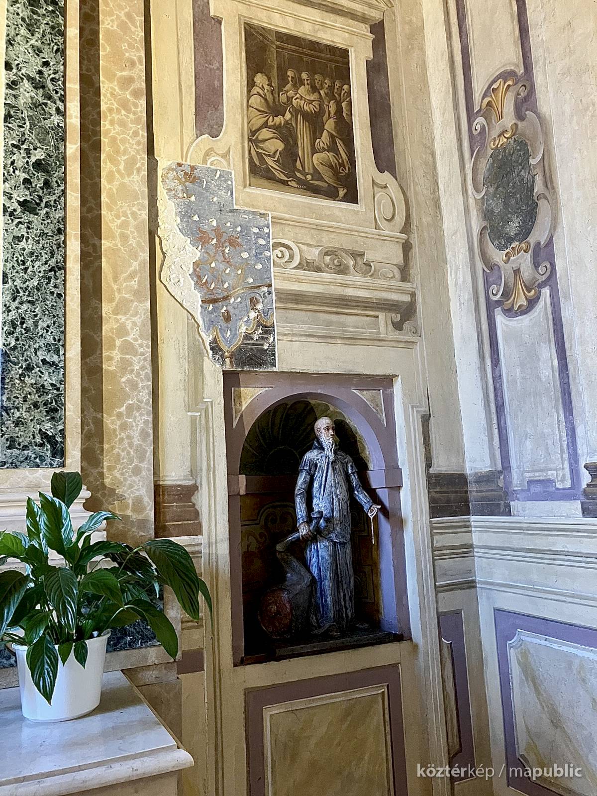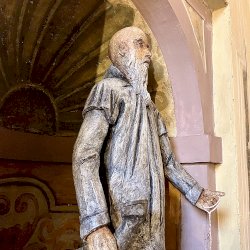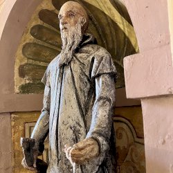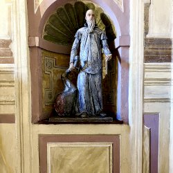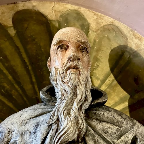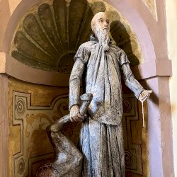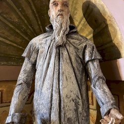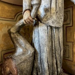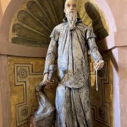 A világos polikróm mázakkal átszelt szürkés terrakotta szobrot 2025 őszén a garegnanói karthausi kolostor Nagyboldogasszony-templomában, a Szent Antal-kápolna egyik fülkéjében helyezték el. [1] [2]
