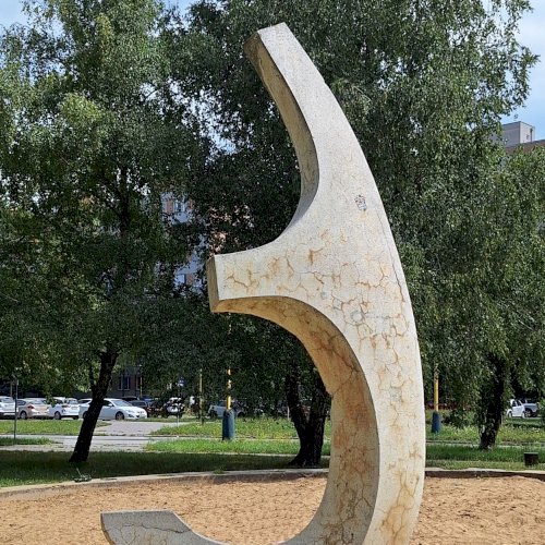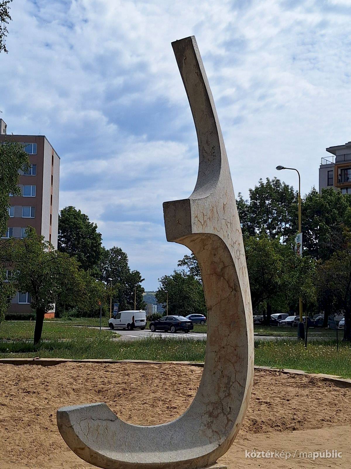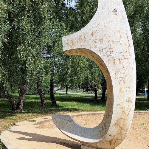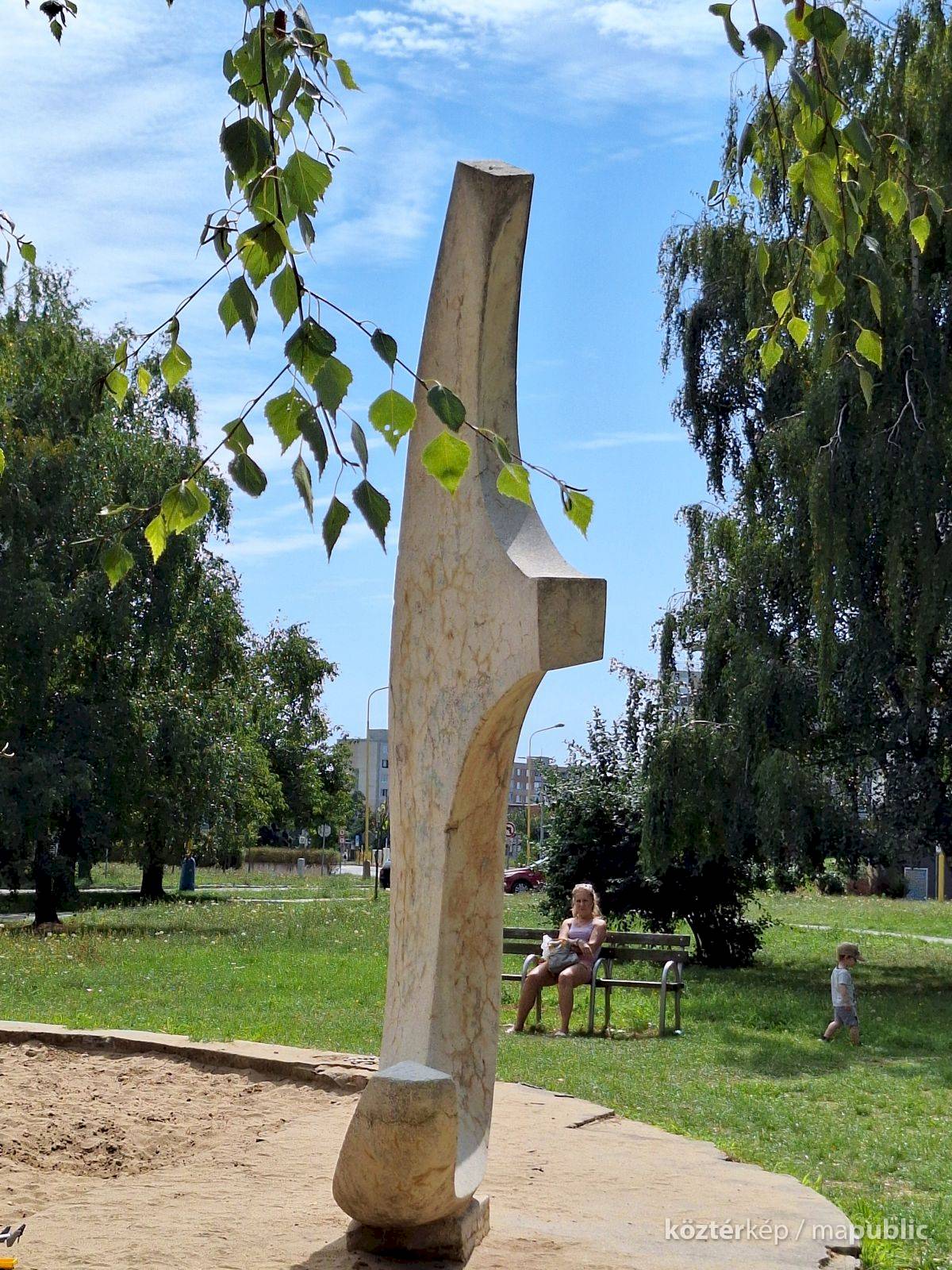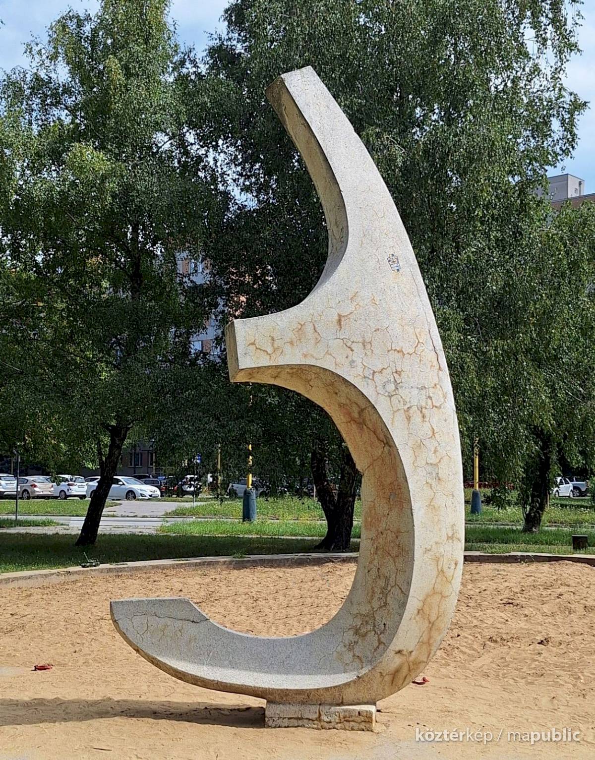 Máthé János kisplasztikái között gyakran találkozunk ezzel az alkotásával (12. fotó). Köztérre már a gömböt nem tette az alkotásába, gondolva, hogy a játszótéren majd kisgyerekek foglaljál el ott méltó helyüket.