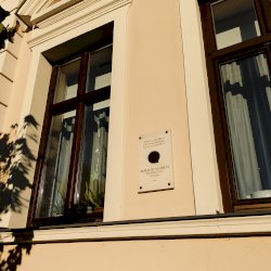 Nyíregyházán kóborolva találtam rá az emléktáblára. Közepes világos színű gránit tábla közepén, egy tenyérnyi bronz dombormű, alig kivehető a festőművész portréja ellenfényben. Szerényen lehajtott fejjel, munkaköpenyben ábrázolta a festőművészt, Nagy Lajos Imre szobrász, Berecz [1] tanítványa. Alul az alkotói szignó, és a készítés éve olvasható. [2] 2025.11.16. 10:03