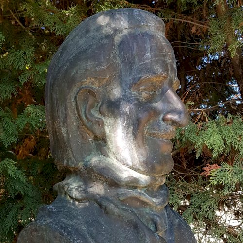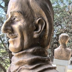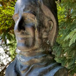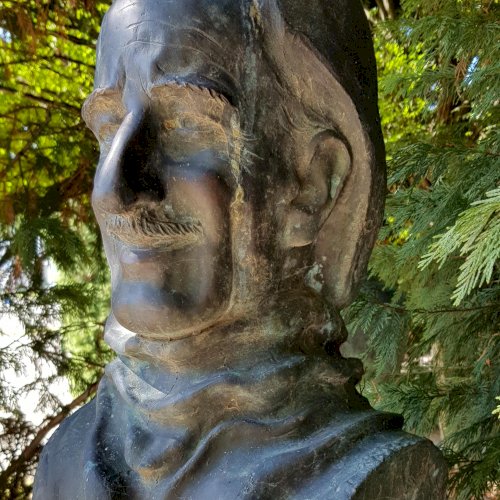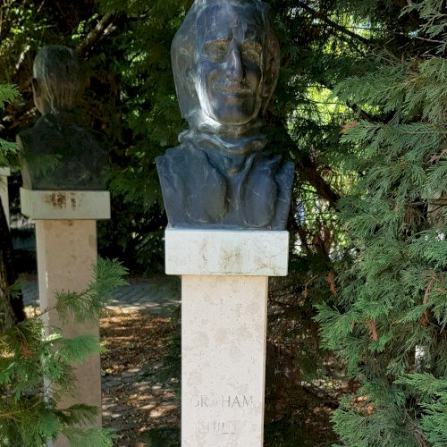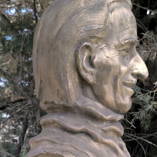 Amikor megláttam a szobrot először, akkor azt hittem, hogy valami félreértés van, mert David Niven nézett velem szemben. Nagy a hasonlóság kettejük között. Hasonlóan keskeny arc, vékony bajusz és előkelő stílus jellemezte őket. A szobor is ennek jegyében készült, remekül megformált arca és hanyagul nyakába vetett sálja tükrözi a eleganciát. Huncut mosolya és kicsit karvaly orra egyből felismerhetővé teszi.