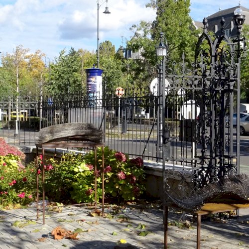 A most élő szoborpark megtekintéséhez, ha a kapun keresztül közelítünk, balra a szépséget, jobbra a gyönyörűséget láthatjuk. Pláne, ha süt a nap, mint ahogy ottjártamkor ez a szerencse ért. És micsoda öröm, hogy rögtön az elején mentem, így pompáznak a szobrok... virágok között.