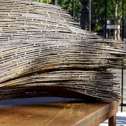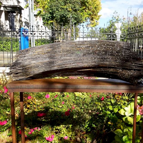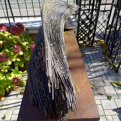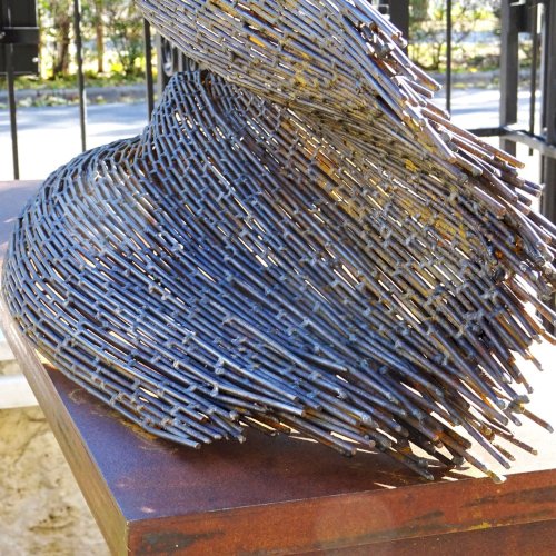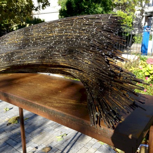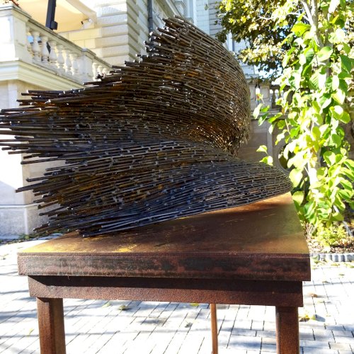 A kiállításon a kiírt megfogalmazás szerinta "két szobrászművész fémből készült alkotásai dialógust folytatnak egymással". A közös nyelv a fém, "egyszerre ellenálló és alakítható, rideg és érzékeny". A fémben rejlő ellentmondások jelennek meg itt: a súly és a könnyedség, a szerkezet és a felület, az emberi gesztus és az ipari nyom. A művek anyagérzékenysége különböző, míg "egy közös térben szólnak egymáshoz, ahol az anyag maga válik párbeszéddé". [1]