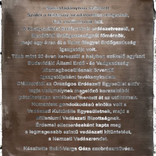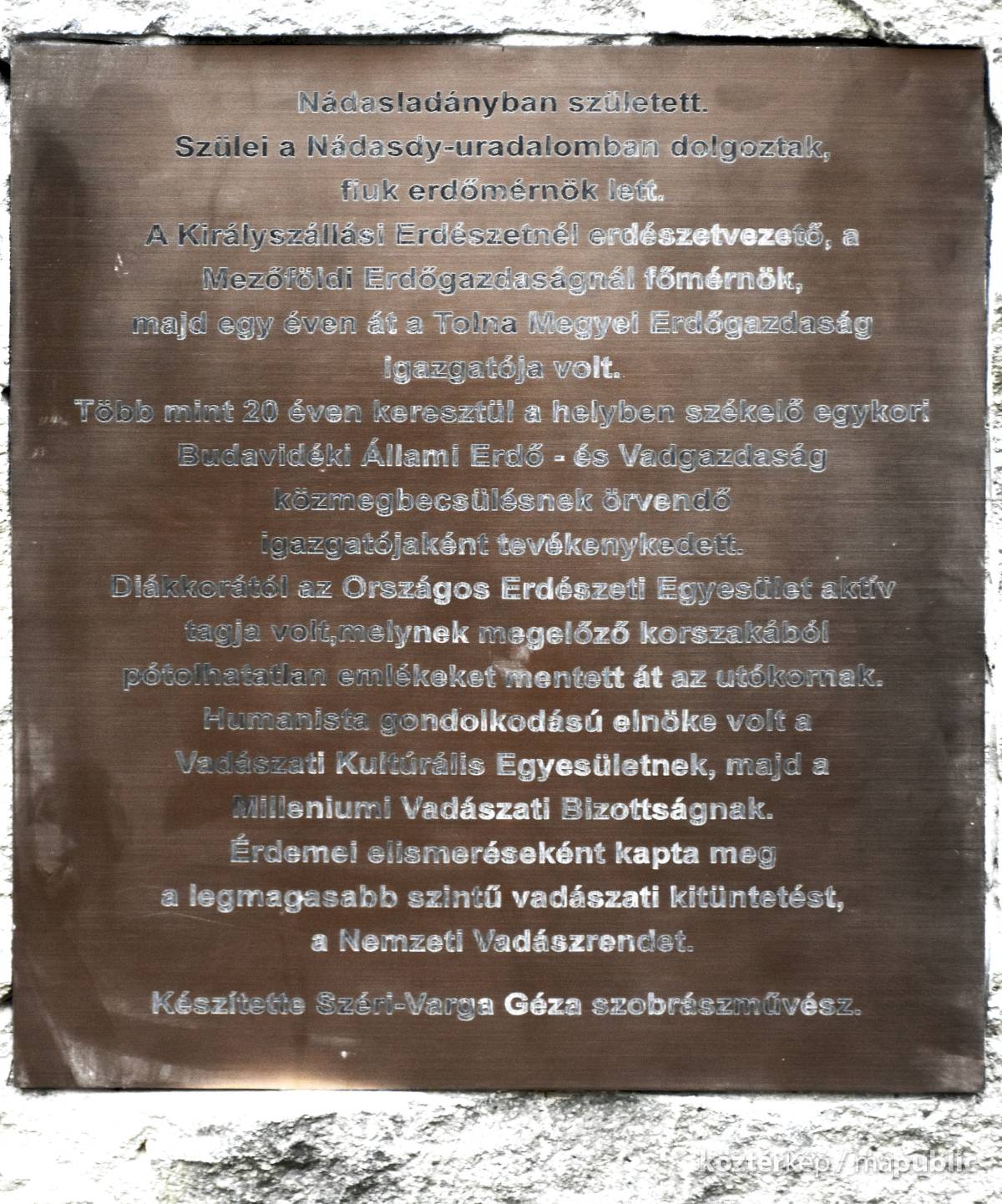Humanista gondolkodású elnöke volt a Vadászati Kulturális Egyesületnek, majd a Millenniumi Vadászati Bizottságnak! Érdemei elismeréseként kapta meg a legmagasabb szintű vadászati kitüntetést, a Nemzeti Vadászrendet.”
