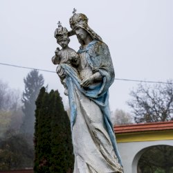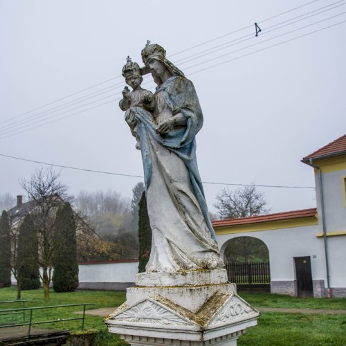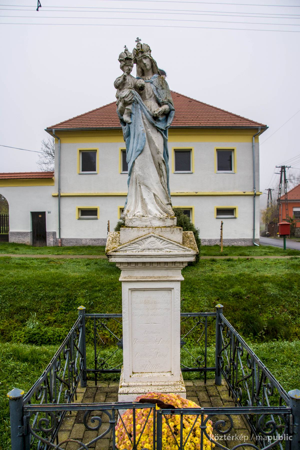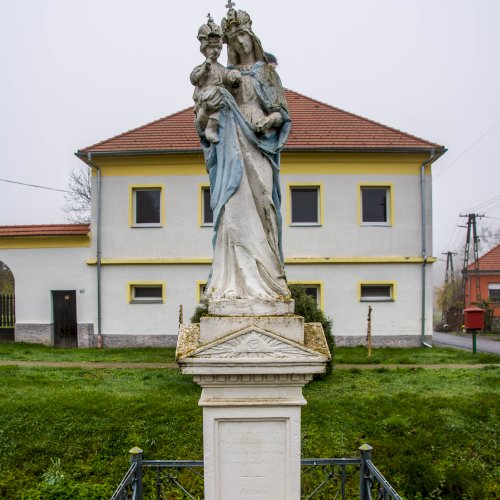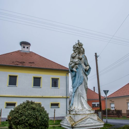 Az egervölgyi Szűz Mária szobor feliratai: „Boldogságos Szűz Mária / Magyarország Védasszonya / Mindnyájunknak édesanyja / Könyörögj érettünk!”