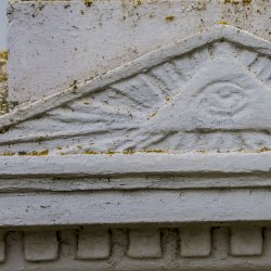A talapzaton Isten-szem ábrázolást látunk, amely a teremtő és gondviselő Atyaisten jelképe.