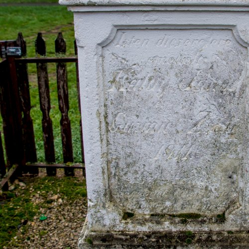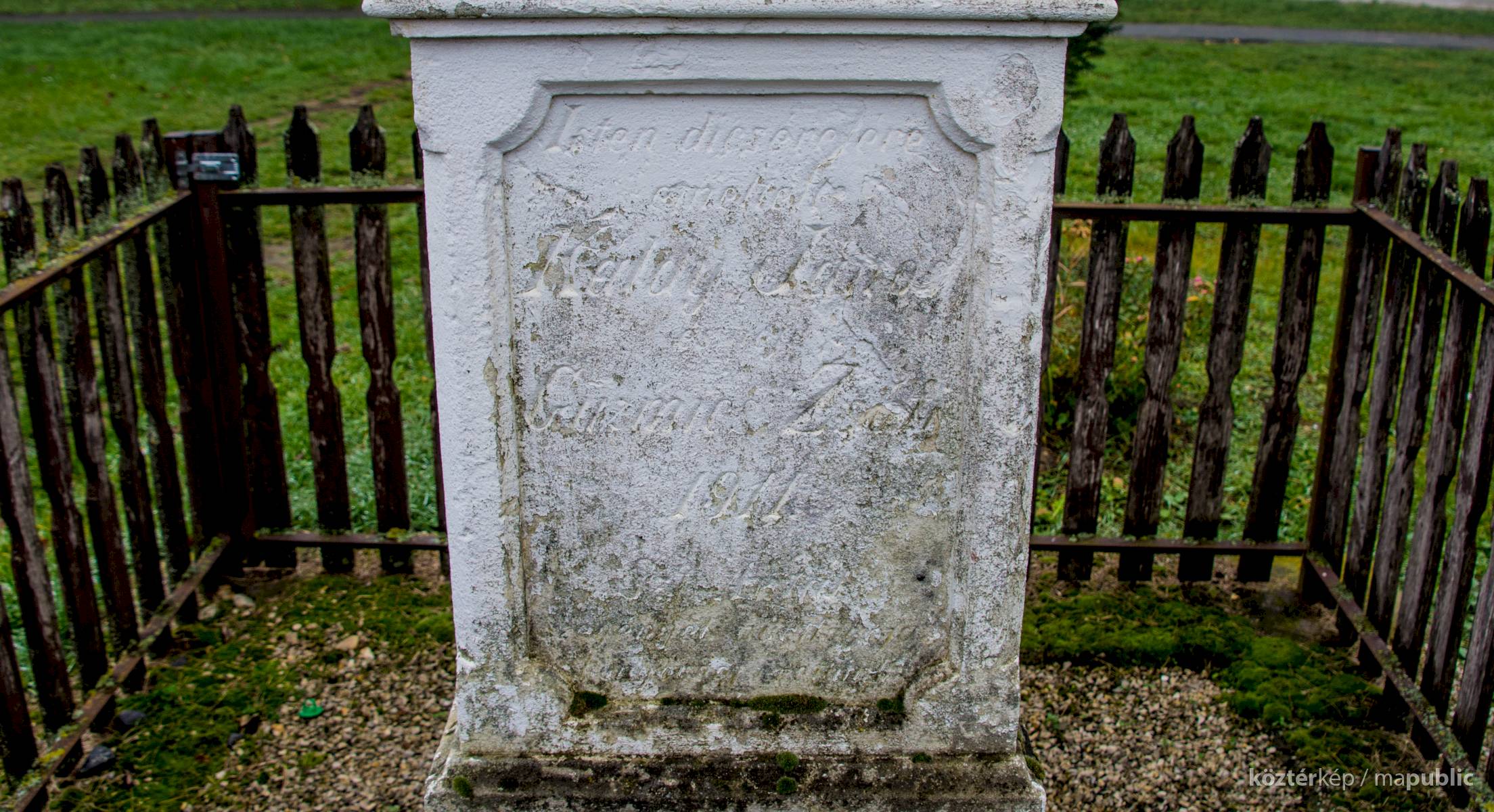 A talapzat felirata: „Isten dicséretére emelték / Káldy János / Guzmics Zsolt / 1911.”