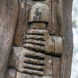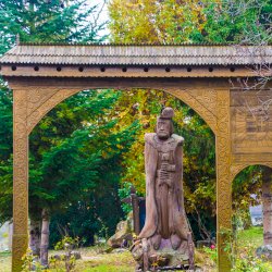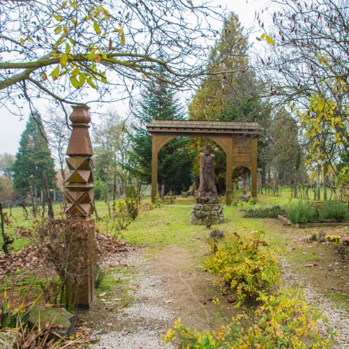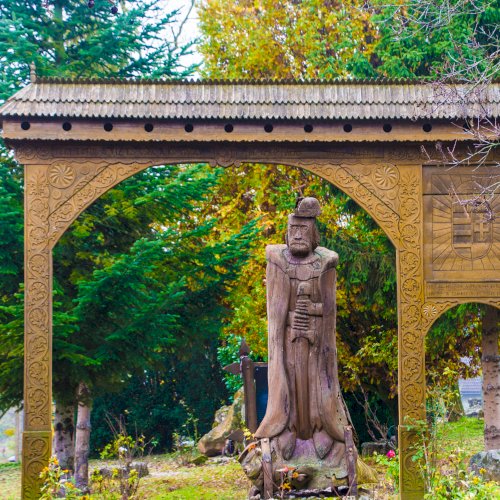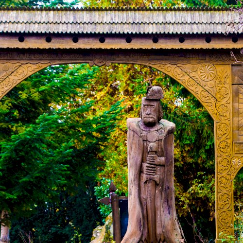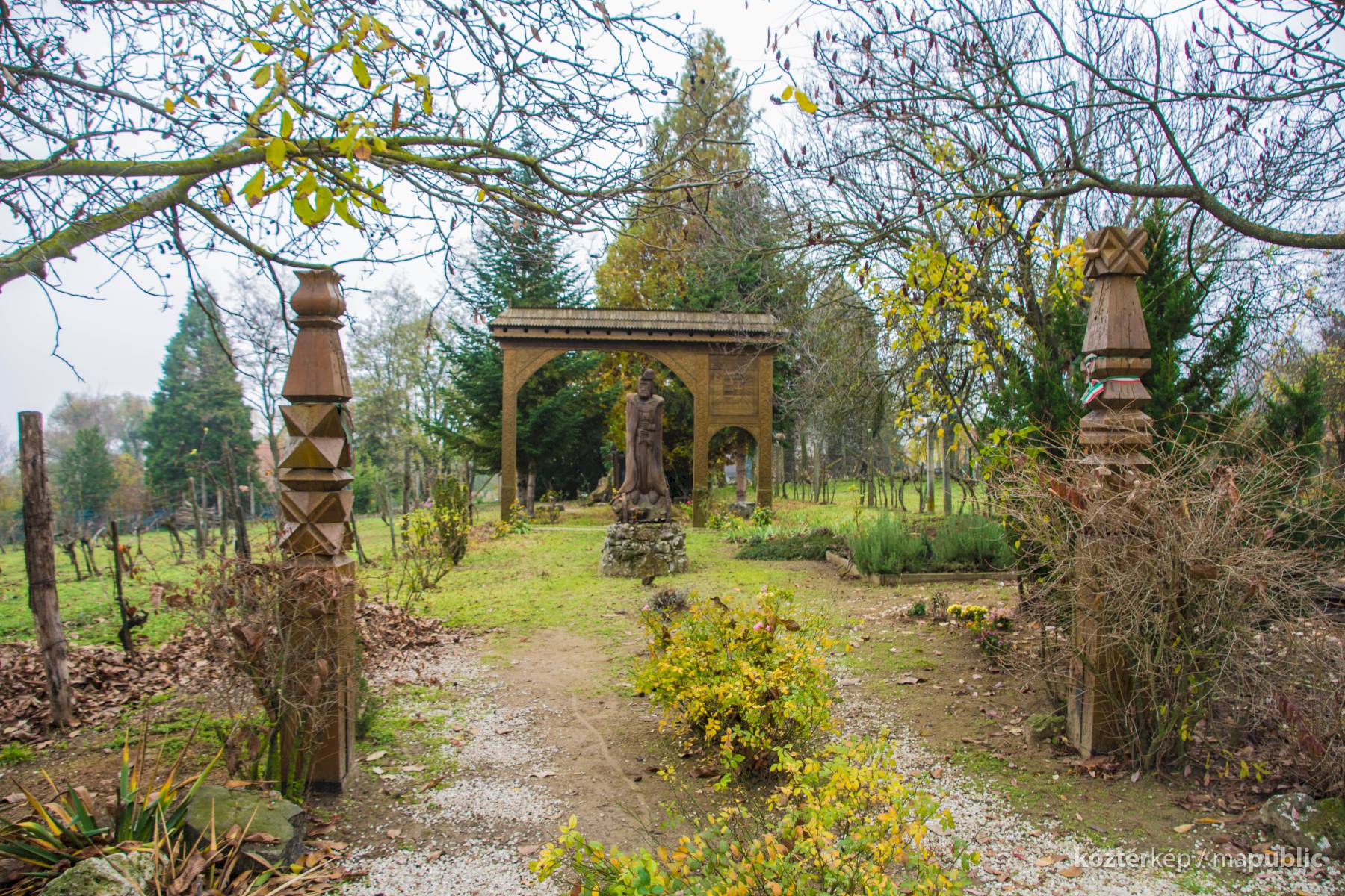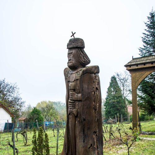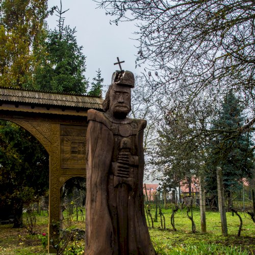 A székelykapu előtt álló szigligeti szobor alkotója „Gazduram”,- azaz Tóth József fafaragó. A szignó megfejtésében Bakos Attila segített.