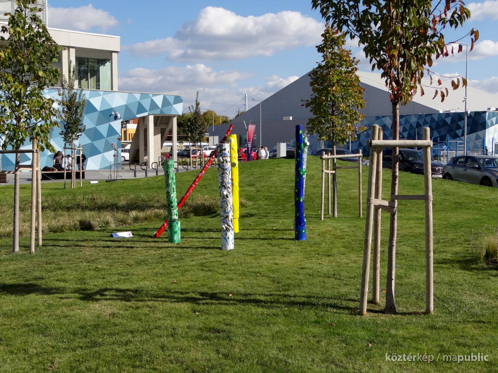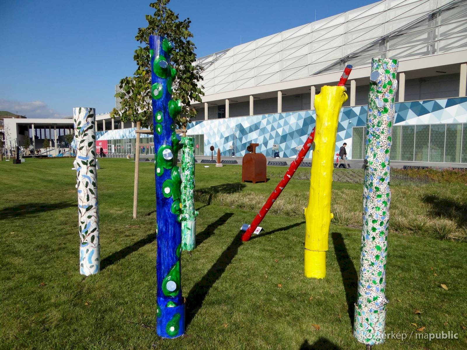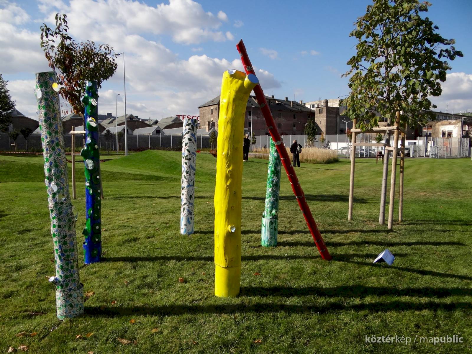 Közjáték: a Napvitorlást fotóztam éppen, amikor az amerikai akcentussal beszélő művésznő több riporter társaságában megérkezett a "szomszédos" installációhoz. Keveset hallottam, de meglepett, amikor említette, hogy szerepelt egy művével egy korábbi Art Market kiállításon. Aztán angolra váltott, és magyarázta elgondolását, miért is formálta meg ezt a művét így, mi a mondandó.