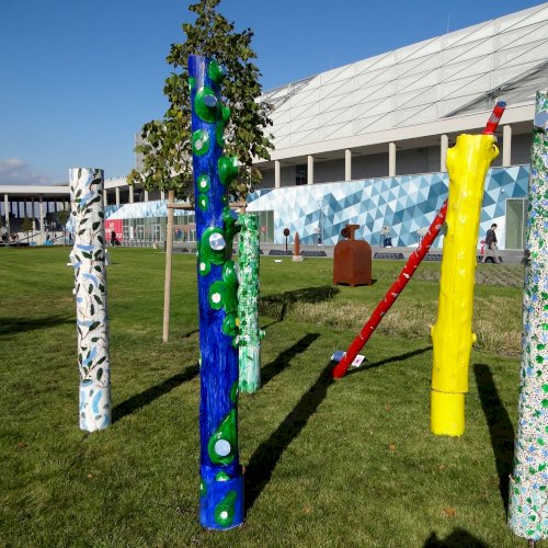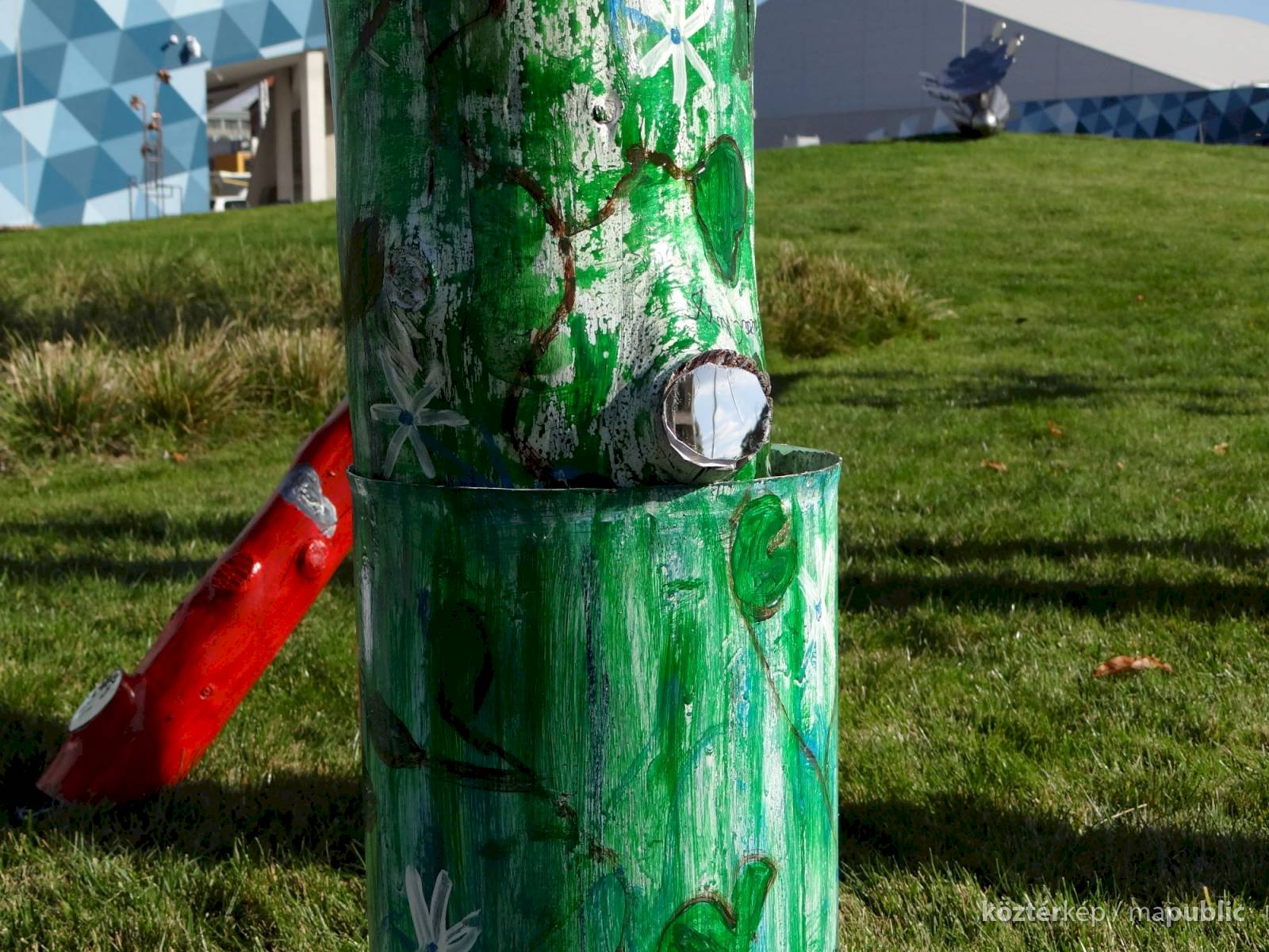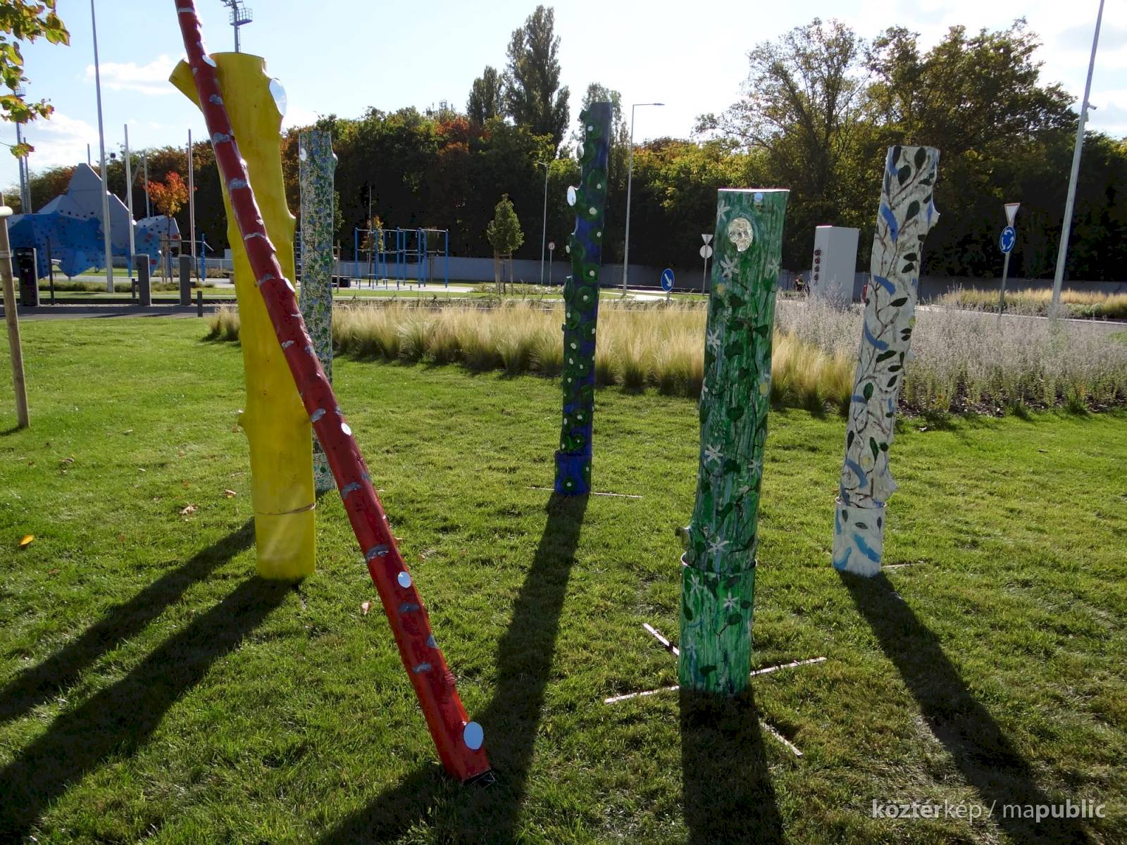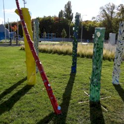 Közjáték: a Napvitorlást fotóztam éppen, amikor az amerikai akcentussal beszélő művésznő több riporter társaságában megérkezett a "szomszédos" installációhoz. Keveset hallottam, de meglepett, amikor említette, hogy szerepelt egy művével egy korábbi Art Market kiállításon. Aztán angolra váltott, és magyarázta elgondolását, miért is formálta meg ezt a művét így, mi a mondandó.