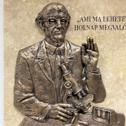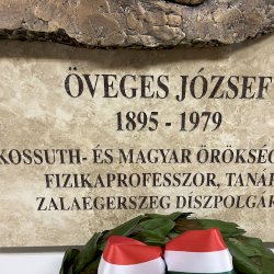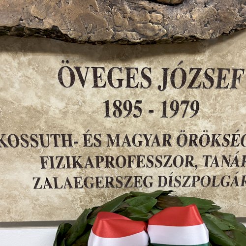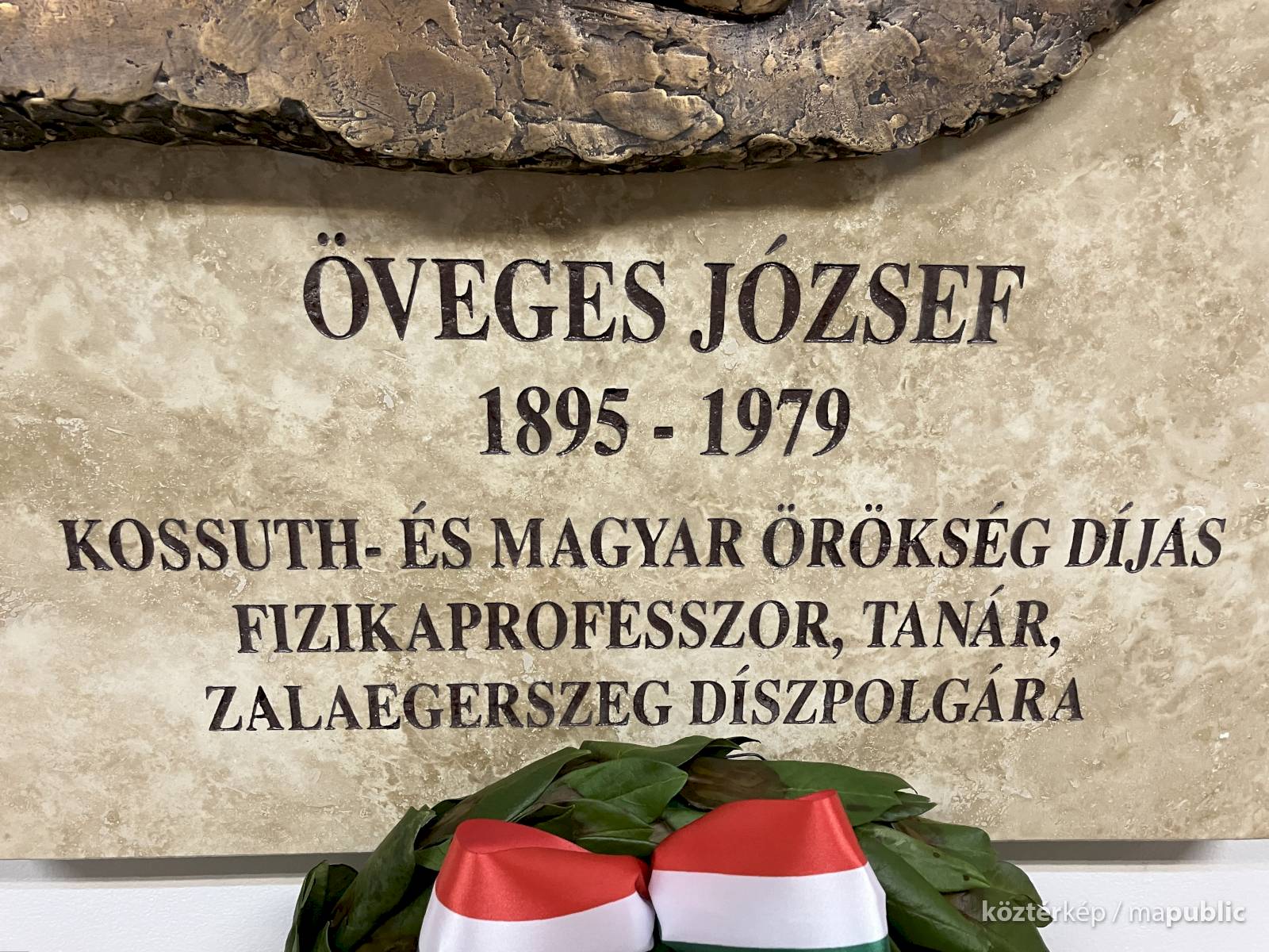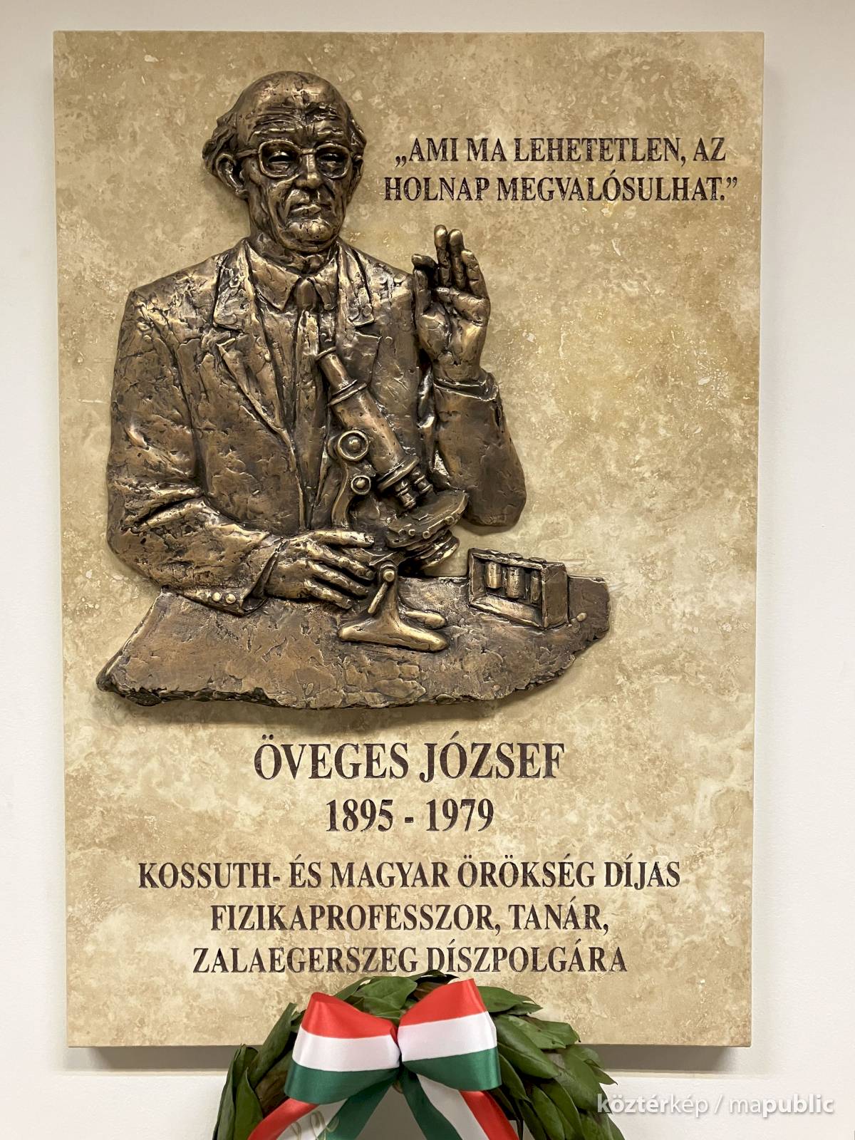 "ÖVEGES JÓZSEF 1895 - 1979 KOSSUTH- ÉS MAGYAR ÖRÖKSÉG DÍJAS FIZIKAPROFESSZOR, TANÁR, ZALAEGERSZEG DÍSZPOLGÁRA"