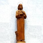Az itt látható szobor – múlt század, 50-es évek – Jézust mutatja, fejét glória övezi. Lábánál kutyája ágaskodik, ami utalás a "foglalkozásra".