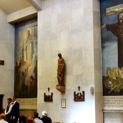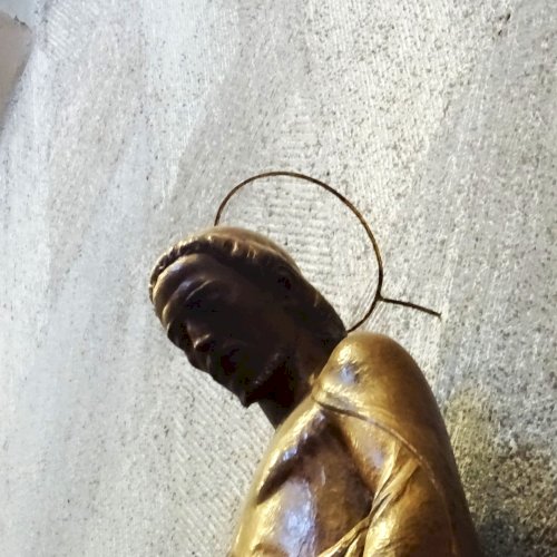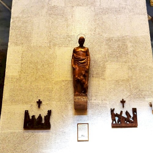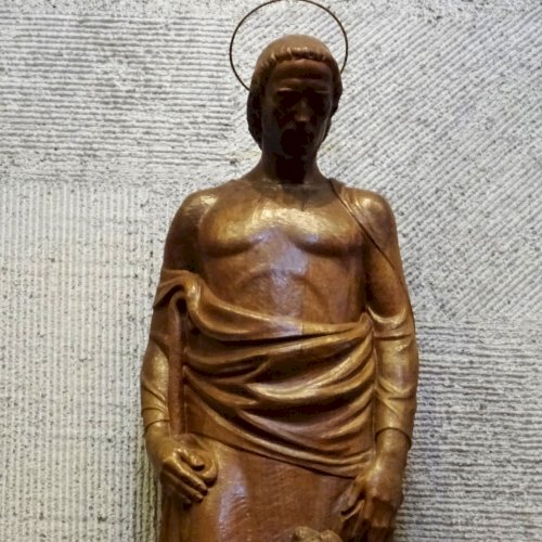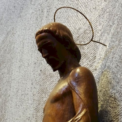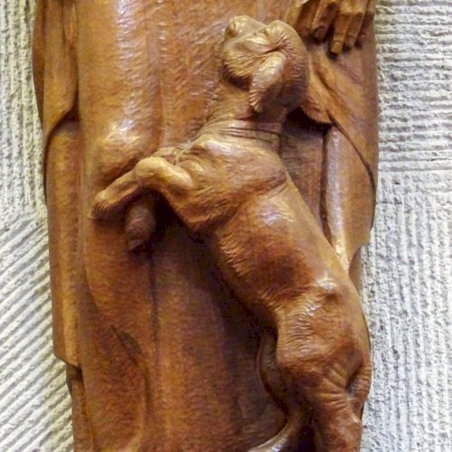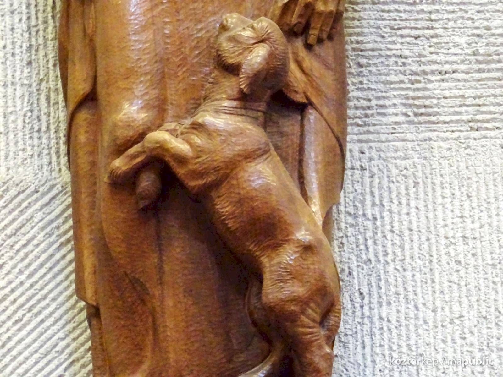 Az itt látható szobor – múlt század, 50-es évek – Jézust mutatja, fejét glória övezi. Lábánál kutyája ágaskodik, ami utalás a "foglalkozásra".