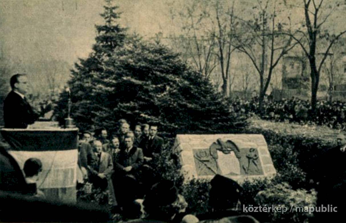 Antal István államtitkár beszédet mond az Antibolsevista Emlékmű felavatásán, 1938