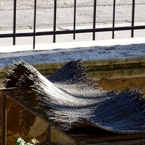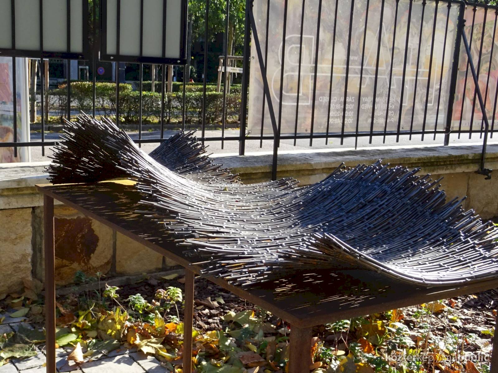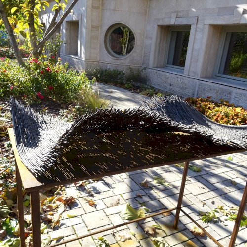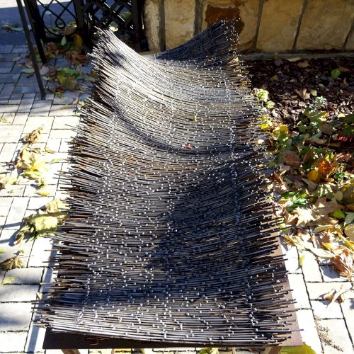 Ez az alkotás is méltó helyet kapott rögtön a kapunál! Nem mellesleg a friss, idei munkák egyike. Én pedig örömmel készítettem a fotókat, miközben fejben összehasonlítottam a köveskáli "Szövet" cíművel, szintén kedvencem.