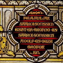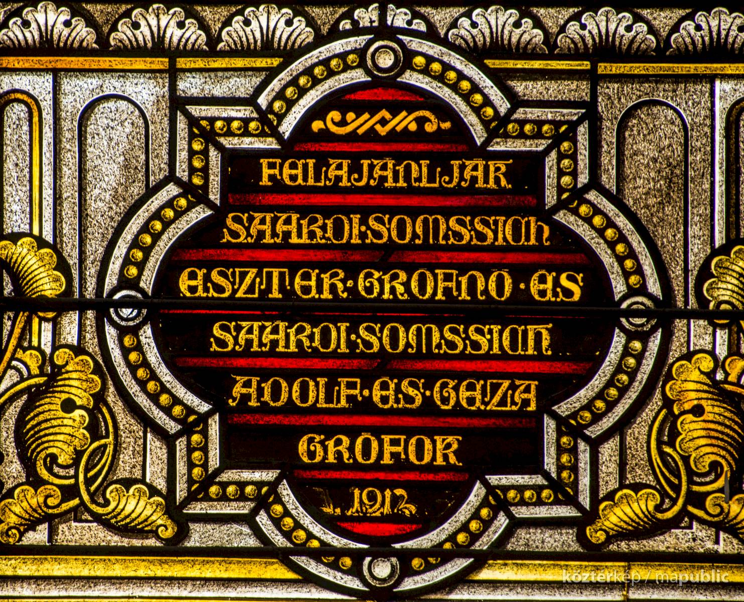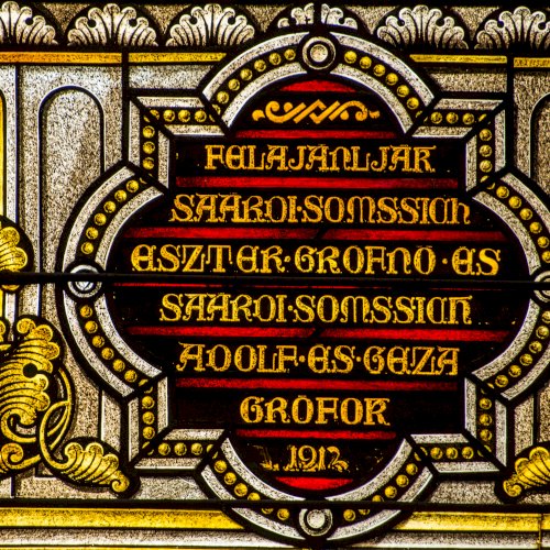 „Felajánlják / Saárosi Somsisch / Eszter grófnő és / Saárosi Somsisch / Adolf és Géza / grófok / 1912.”