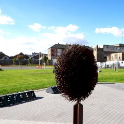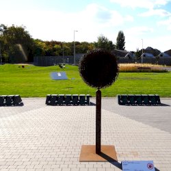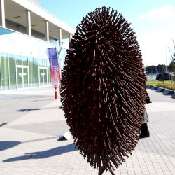 Két testvér szobor egymás mellett, de hatótávolságon kívül (nem tudtam közös fotót készíteni róluk). A két alkotás rokonsága egyértelmű, mint az előző évi kettő esetében is az volt, ill. mind a négyen látható, azonos kéz műve, továbbgondolás.