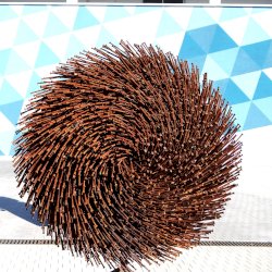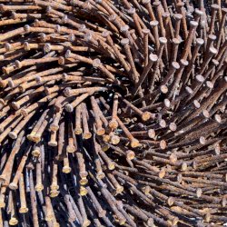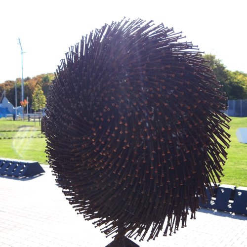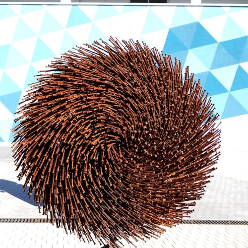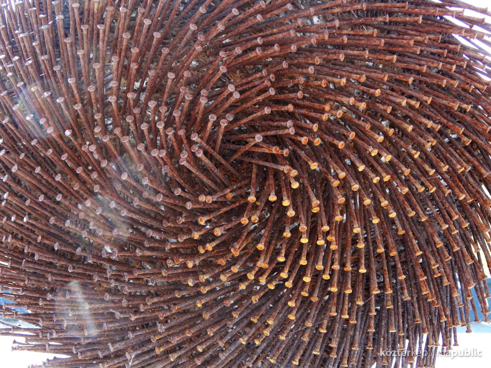 Mindezt én nem tudom az adott keretek közé süríteni. A forrás cikkek részletezik, tessék szíves elolvasni, milyen gondolatiság kíséri a szögekből formált, hitvallásszerűen geometrikus, absztrakt szobrok létrejöttét.