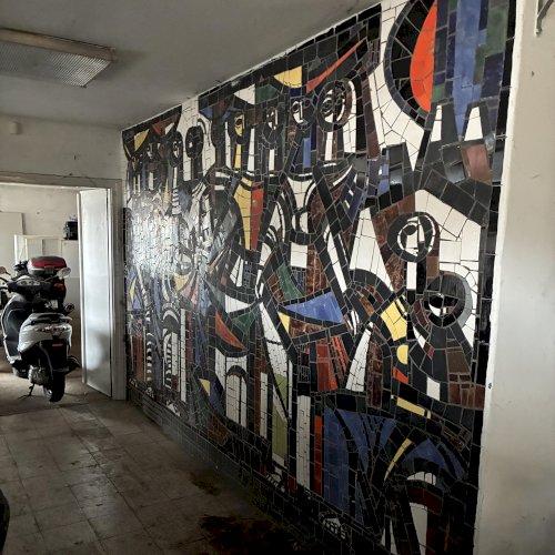 Az épület díszítésére a 70-es évek elején Angyalföldi Szabó Zoltán festőművész kapott megbízást, aki egy kerámiamozaikot készített az ebédlő földszintjére. A műalkotás az épület gyárterület felőli bejárataival szemben lévő falfelületre került, így minden ide betérő találkozhatott vele.