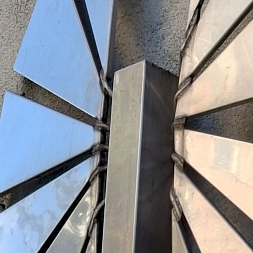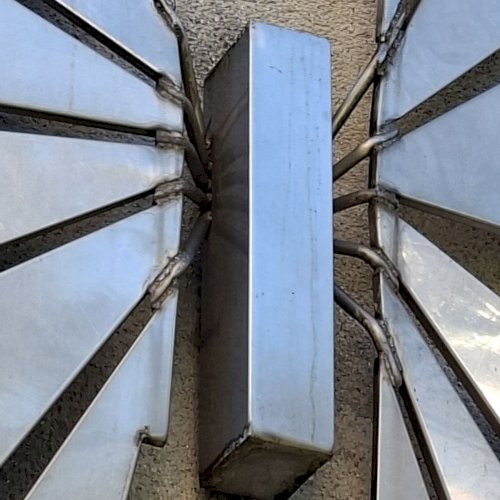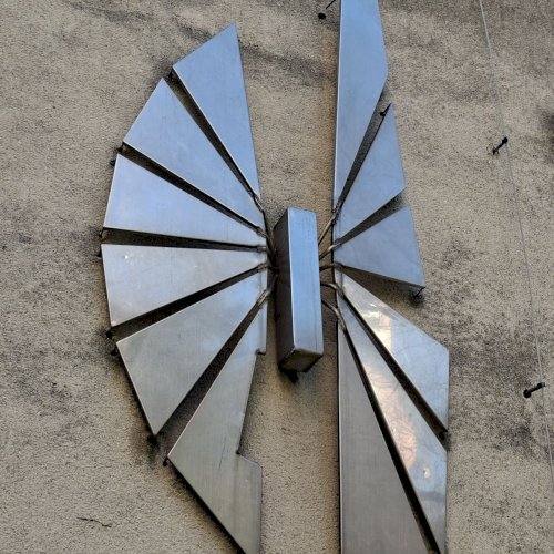 Sajnálatos, hogy amikor a földszintet színesre festették - talán éppen a pillangó volt útban - az emeleti rész festetlen maradt, így szürke alapon a fém színe nem kontrasztos.