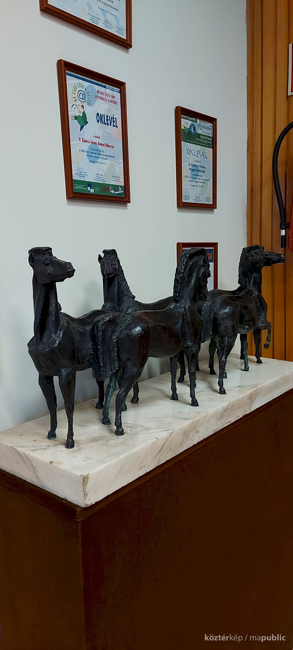 1984 novemberétől a televízióban hónapokon át tartott az a Szivárvány elnevezésű országos műveltségi vetélkedő, ahol az ország több városának ismert szakemberei versengtek a győzelemért. A vetélkedőn – melynek miskolci helyszíne a Rákóczi Könyvtár volt – a városi versenycsapat szűkebb pátriánk számára a második helyezést hozta el. A díjnyertes csapatok jutalma egy-egy értékes művészeti alkotás volt. Miskolc versenycsapata Kiss István szobrászművész Lovak című alkotását nyerte el, melyet ezután a könyvtárban állítottak ki.[1]