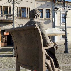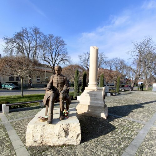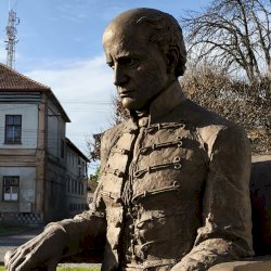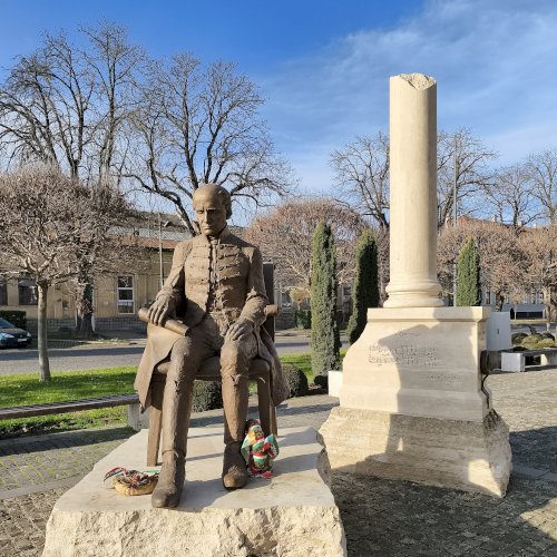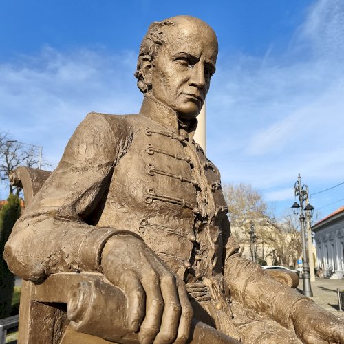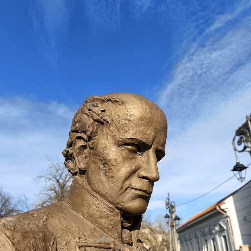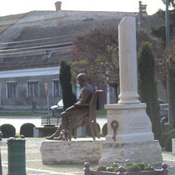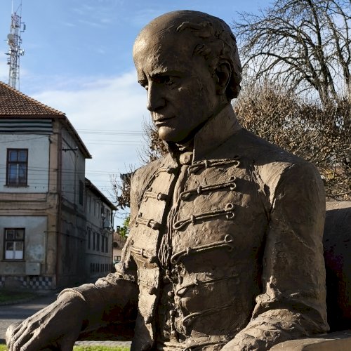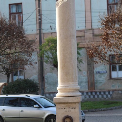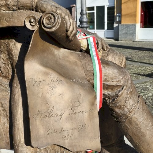 "Nemzeti imánk, a Himnusz keltezésének 200. évfordulója alkalmából állítottak szobrot a szerző Kölcsey Ferencnek Nagykárolyban. Az alkotást az egykori Arany Szarvas vendéglő, ma már a polgármesteri hivatal épülete előtti téren helyezték el...