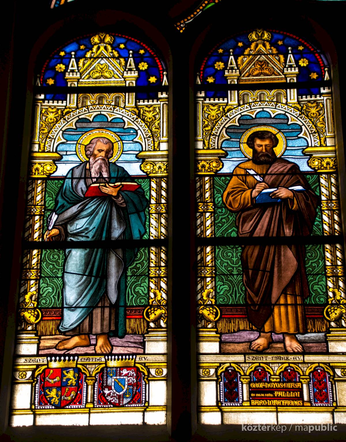 Az ablakokat gróf Hoyos Miksa és neje Pallini báró Inkey Ágnes készíttette.