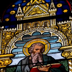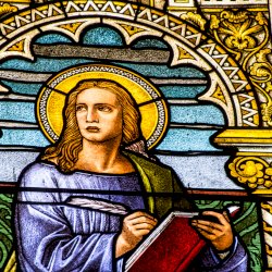 Szent János, Jézus szeretett tanítványa, a négy evangélista közül a legfiatalabb, szakáll nélküli ifjúként ábrázolt.[8]