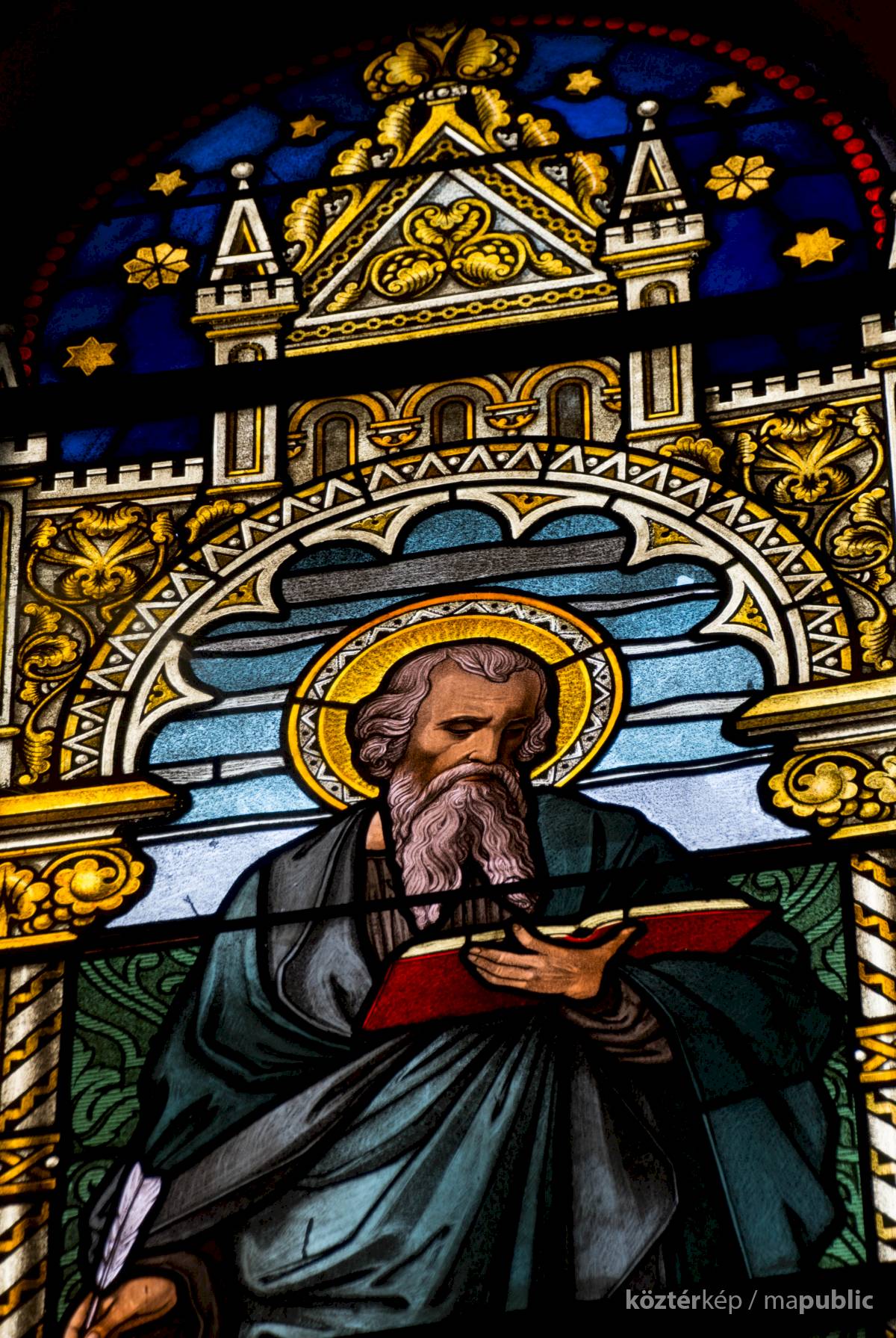 Szent Máté (Lévi) kezében könyvvel és tollal ábrázolt.[5]