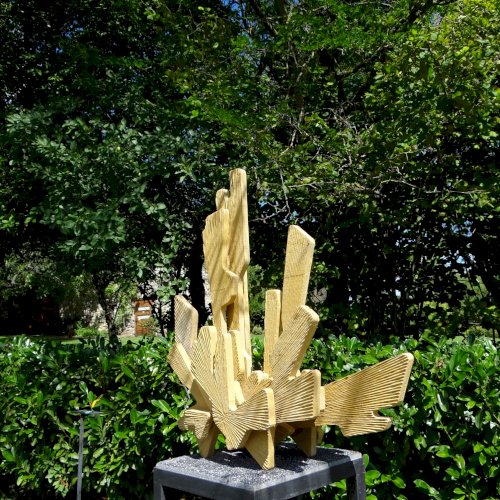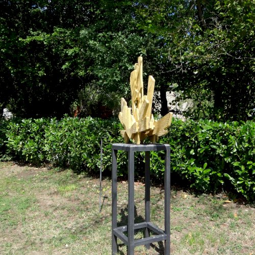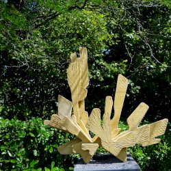 "A szobor egyszerre utal egy ősi növény formavilágára és egyfajta építkezésre: mintha levélből lett volna struktúra, természetből építmény. A ginkgófa az időtlenség, a túlélés és a szépség jelképe is – itt most anyaggá válik, formát ölt, és helyet kér magának a park élő rendjében."