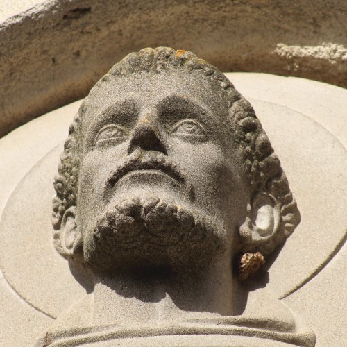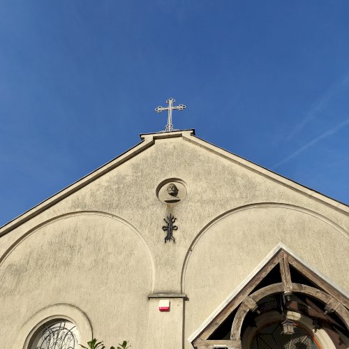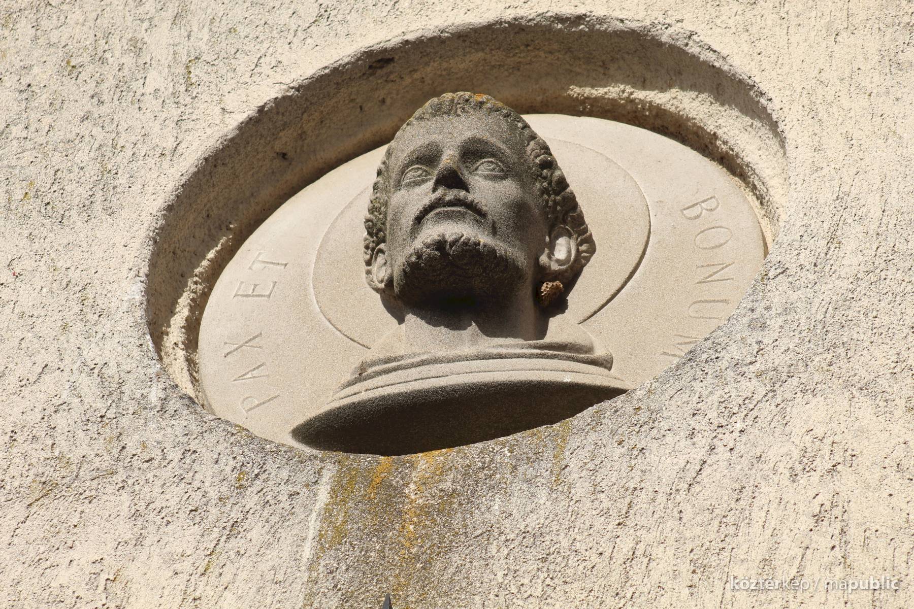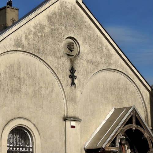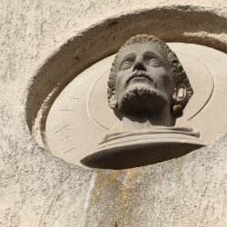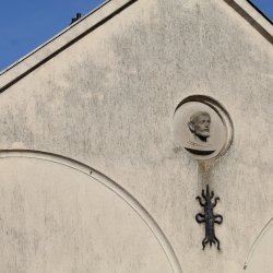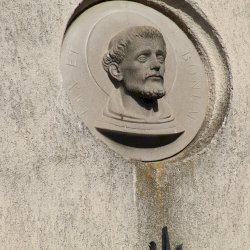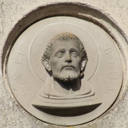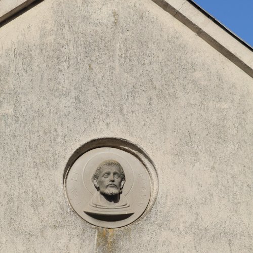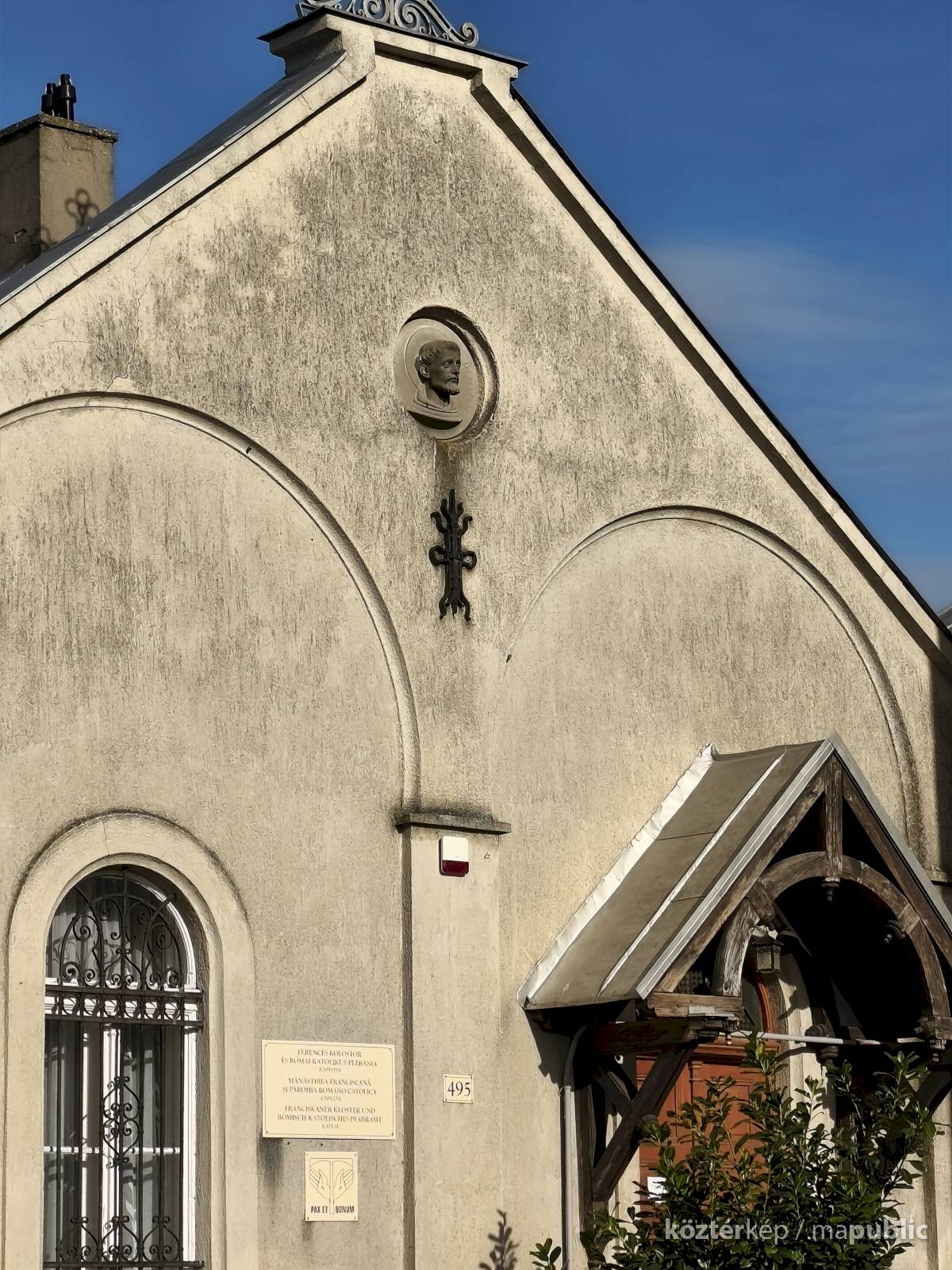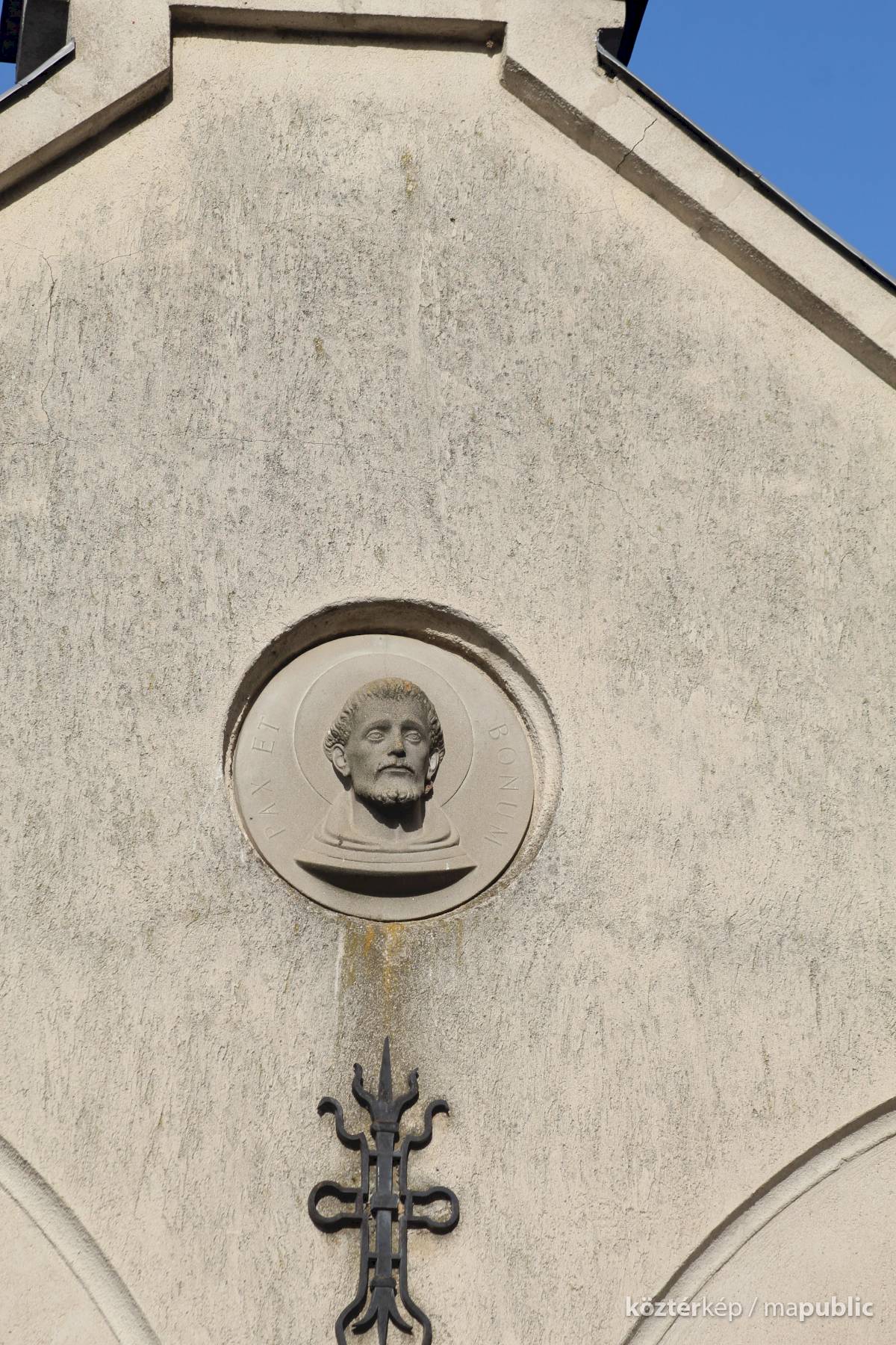 A kolostor külső falán felfigyeltem egy szép domborműre. A Ferences rend alapítójának, Assisi Szente Ferencnek domborművére, és jelmondatára. Kerek mélyedésben látható az életnagyságnál nagyobb dombormű, mely a szent fejét ábrázolja, fiatal kopasz szakállas férfit. Feje körül a Ferencesek jelmondatának vésete olvasható: Pax et Bonum, Béke és Jóság