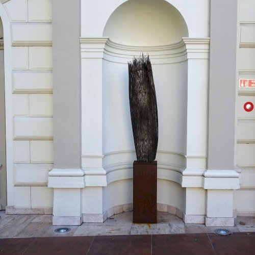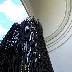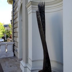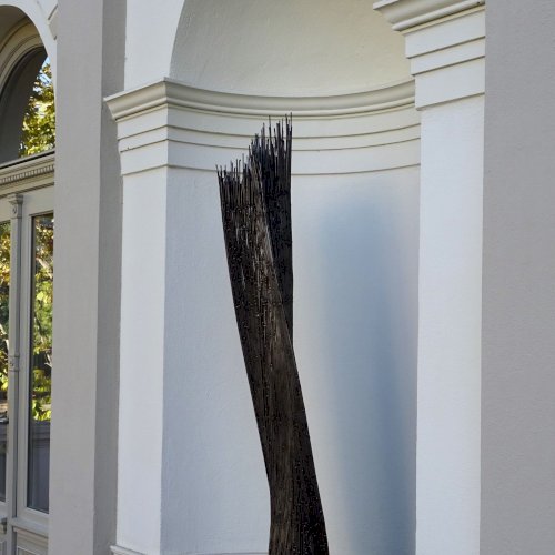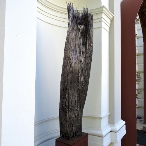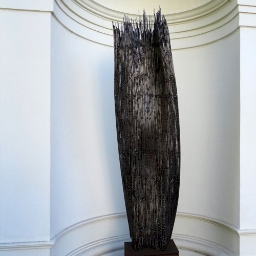 Ez az alkotás idén készült, és újat hoz. A megszokott fekvő, néha földközeli plasztika vertikális irányba fordul. A cím is beszédes – a művészi kifejezésmód adott. A technika, az elv és az anyag persze ugyanaz, vagyis igaz rá mindaz, amit eddig társairól írtam, ill. amit maga az alkotó nyilatkozott korábban.