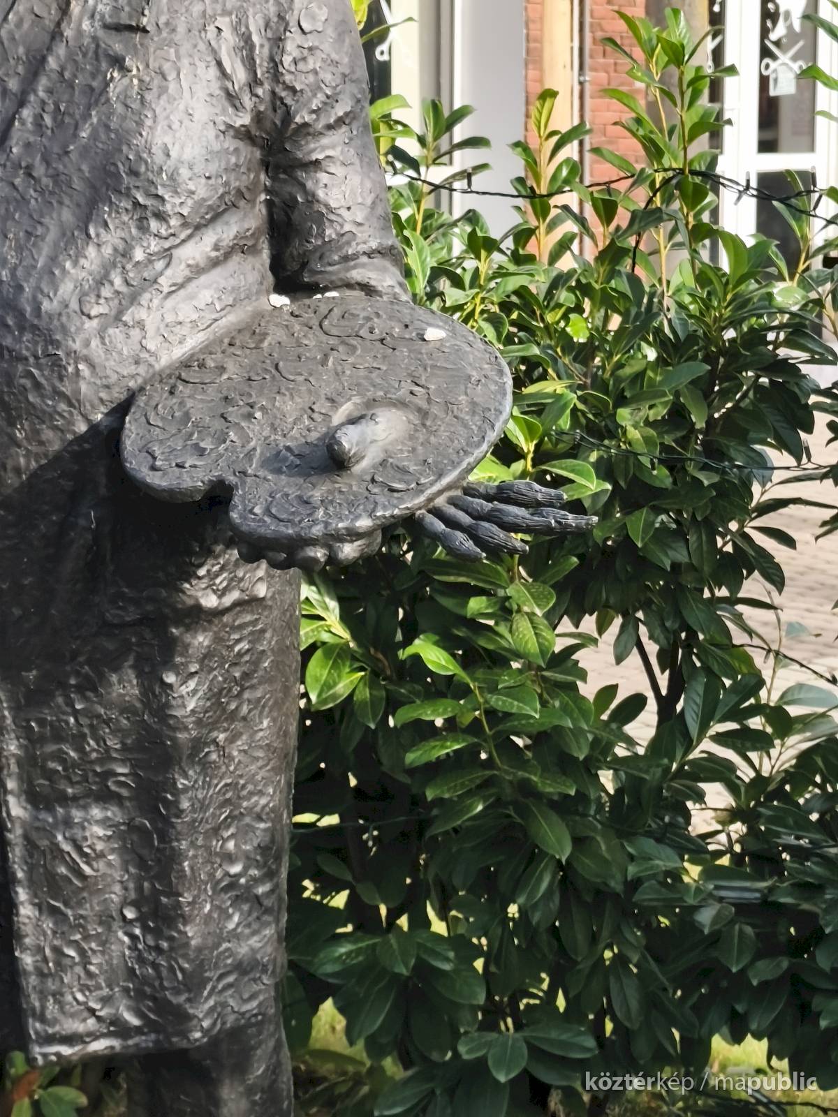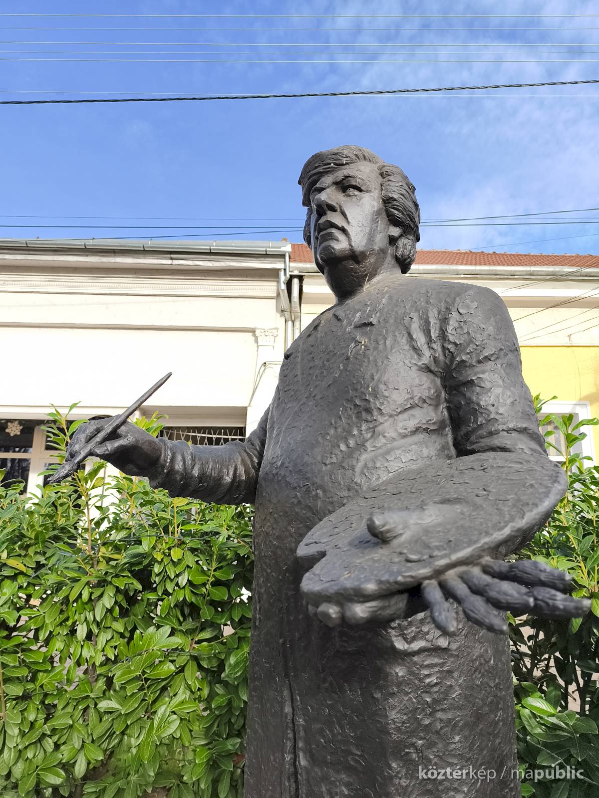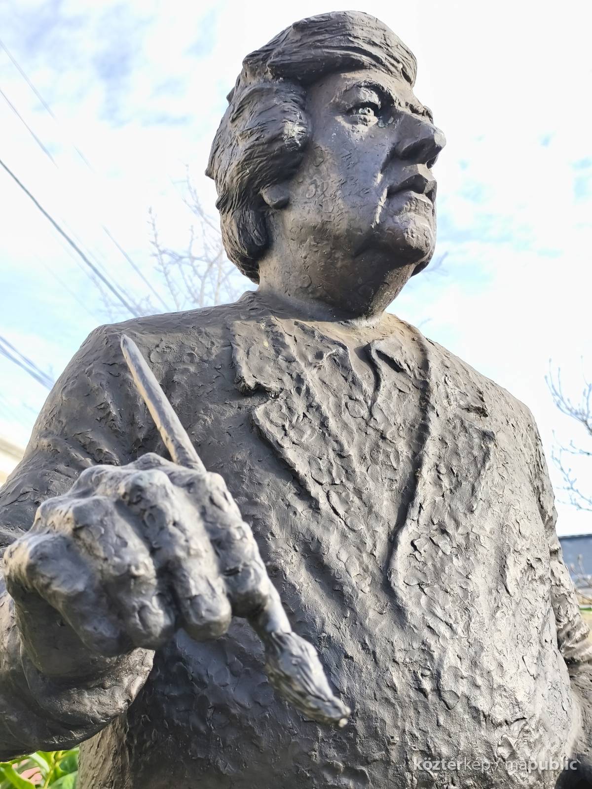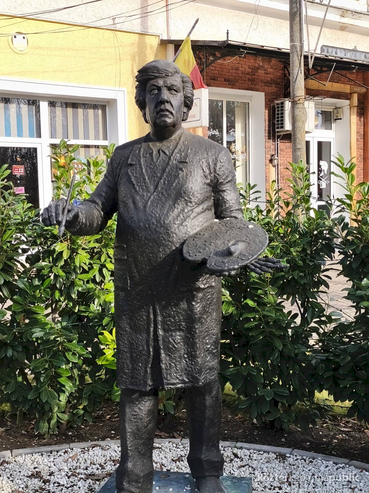 Egészalakos szobra életnagyságú, festő köpenyben terpeszállásban, kezében ecsettel és festékes palettával ábrázolta a szobrászművész Radu Ciobanu. Kissé pocakos öregúr áll előttünk dobogó szerű bronzzal borított alacsony talapzatra állítva. A talapzaton Papp Aurél aláírása és évszámok olvashatók, oldalt az alkotó és az öntöde szignója látható.