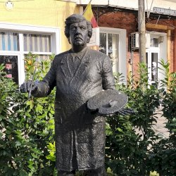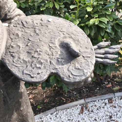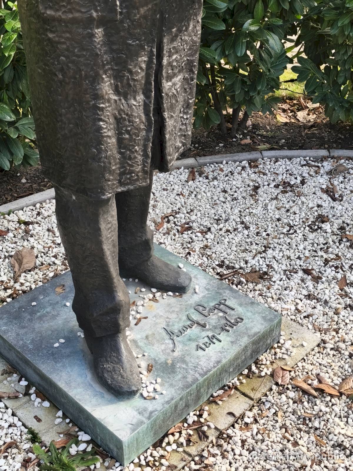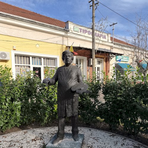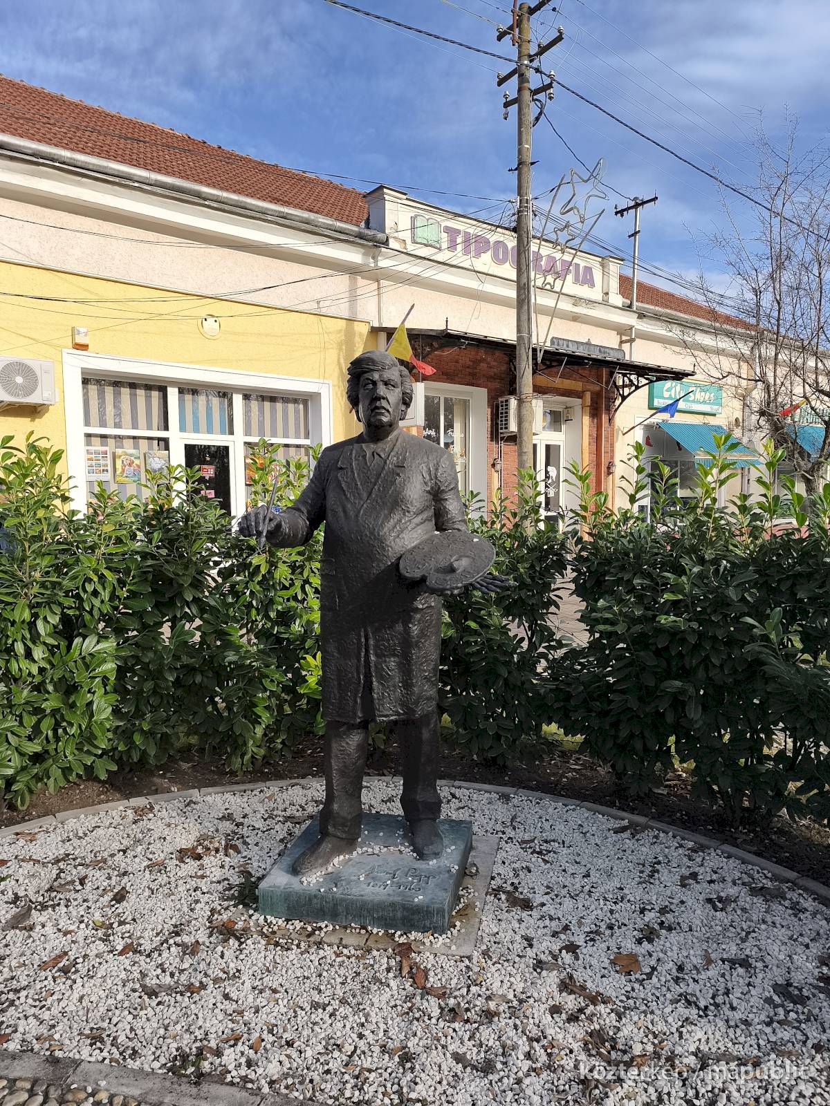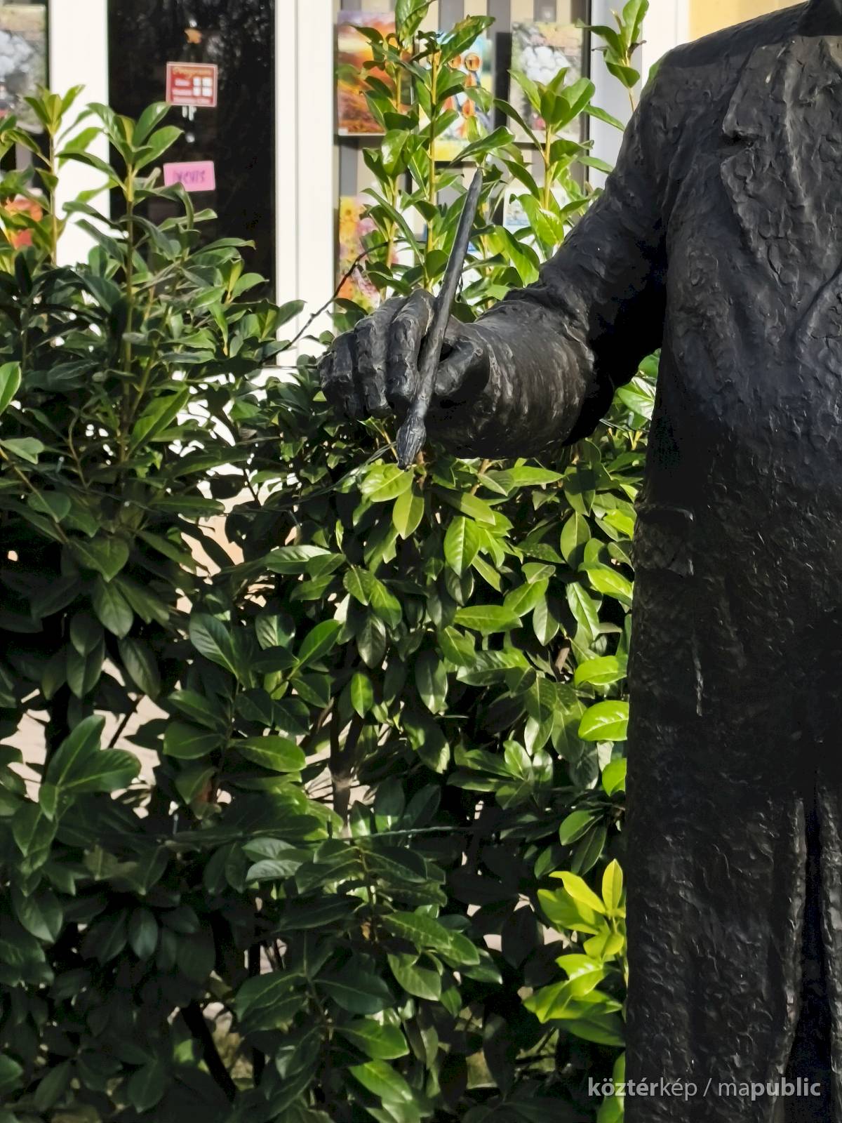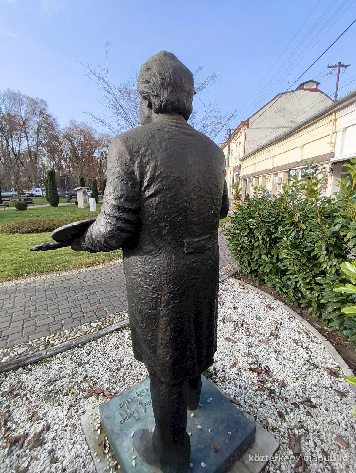 Egészalakos szobra életnagyságú, festő köpenyben terpeszállásban, kezében ecsettel és festékes palettával ábrázolta a szobrászművész Radu Ciobanu. Kissé pocakos öregúr áll előttünk dobogó szerű bronzzal borított alacsony talapzatra állítva. A talapzaton Papp Aurél aláírása és évszámok olvashatók, oldalt az alkotó és az öntöde szignója látható.