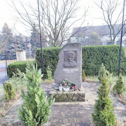 A horgosi Havas Boldogasszony Templom előkertjében áll az emlékkő, raja a plébános bronz domborművével. Simor Márton szobrászművész alkotása. Egyik oldalán csiszolt, hátul durván kidolgozott kő előlapján fenn, az életnagyságú relief alatta a vésett kőben fehér festékkel a név és az évszámok olvashatók.